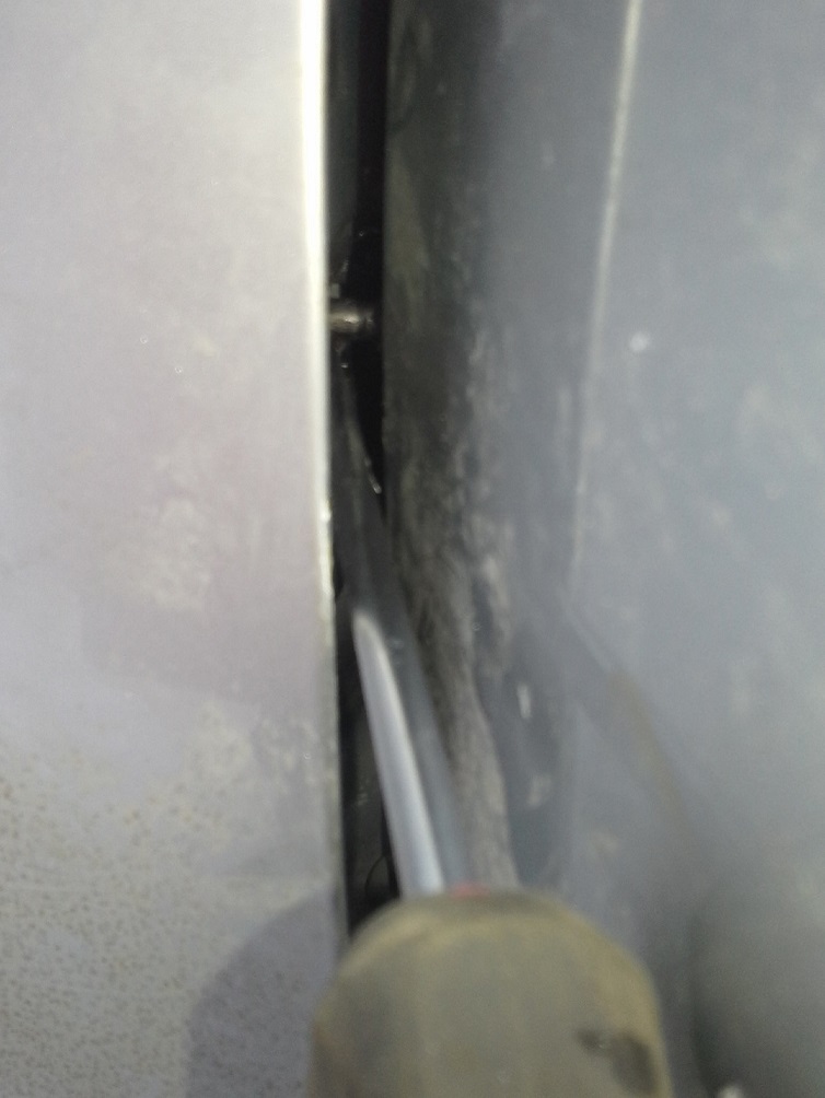 Мъчих се доста, докато намеря подходящият начин, бутах отвътре, отвън дърпах, натисках, със щангата се опитвах и не става и това е. Отворих задната врата докрай, насрещника не се вижда, но когато леко се бутне с коляно задната врата посока към колата за затваряне, насрещника се вижда много ясно. Първо опитах да бутна с тел, бургия, отверка и какво ли не още самият механизъм за заключване, но не стана, понеже нямам видимост. Тогава реших да пробвам по хамалският начин. Взех дебела отверка и чук, бутнах леко с коляно задната врата и насрещника се показа. Опрях отверката в него и бой с чука отгоре