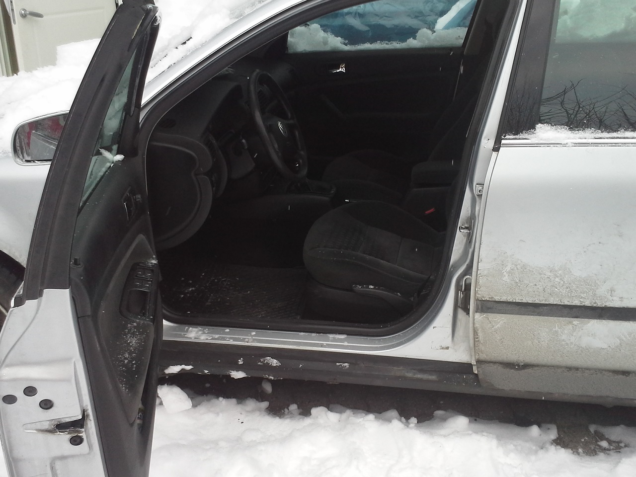 . След това взимам щангата и отивам между задната седалка и задната врата от там подпирам шофьорската врата така че да се отвори навън с щангата и същевременно дърпам ръчката на вратата, отвън, щото тази отвътре не може да я достигна, понеже работих сам и тогава ... бум... отвори се :). Интересното е че бях застегнал зверски болтчетата на насрещника и си мислех, че тоя метод няма да има успех, но уви за щастие сгреших и я отворих. А сега снимков материал, както обещах.Преди това, искам да благодаря на всички колеги, откликнали на проблема ми и специално на kossis