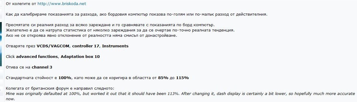 mr24 написа:Някъде бях чел (ако не се лъжа тук) как се коригира разхода показвам от бордовия компютър, но не го намирам. Дали може някой да ме съпортне?
