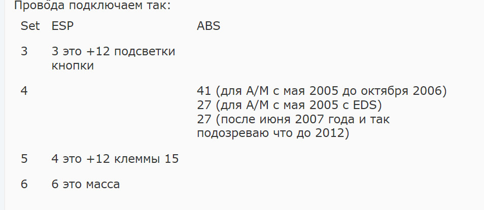 На разлчините ABS-и, кабела е на различен пин. Без ESP e на 7 пин. С ESP без вакуум сензор е на 27, а с вакуум сензор е на 41 пин.