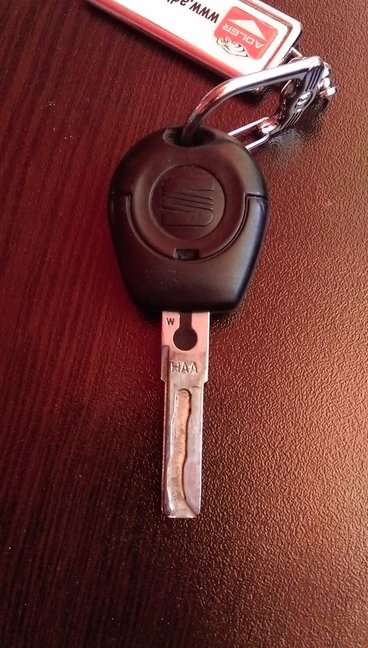 Здравейте, имам проблем с ключа на колата и по специално с оригиналната аларма. Бутоните и преди ми правеха проблем и понякога не искаше да отключва/заключва, но от скоро изобщо не реагира. Батериите са сменени с нови, а и ключа реагира на натискането, защото свети. Ще съм много благодарен, ако някой помогне или ми дадете информация за човек, който може да установи проблема. Колата е Сеат Ибиза от '98 г. Прилагам и снимки на самия ключ.