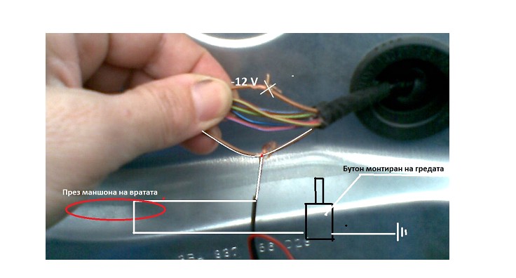 Запоява се един проводник паралелно към КАФЯВ с бяла нишка и през маншона на вратата се връзва към бутон монтиран на гредата.