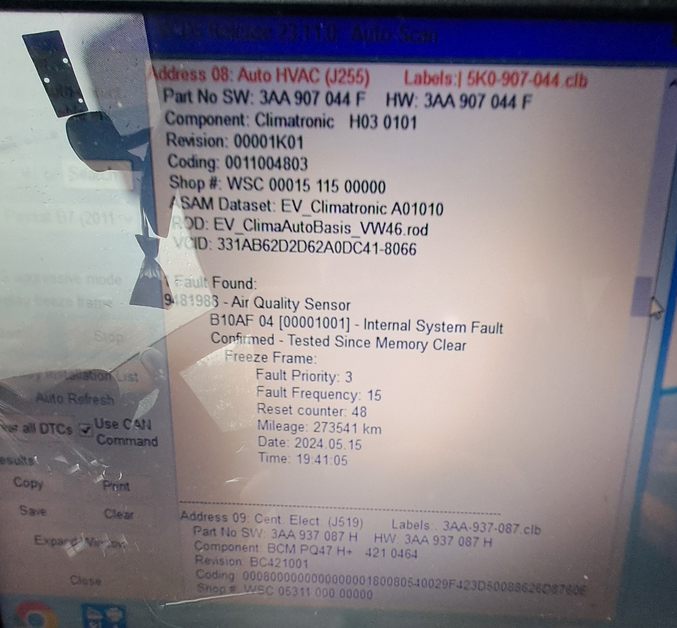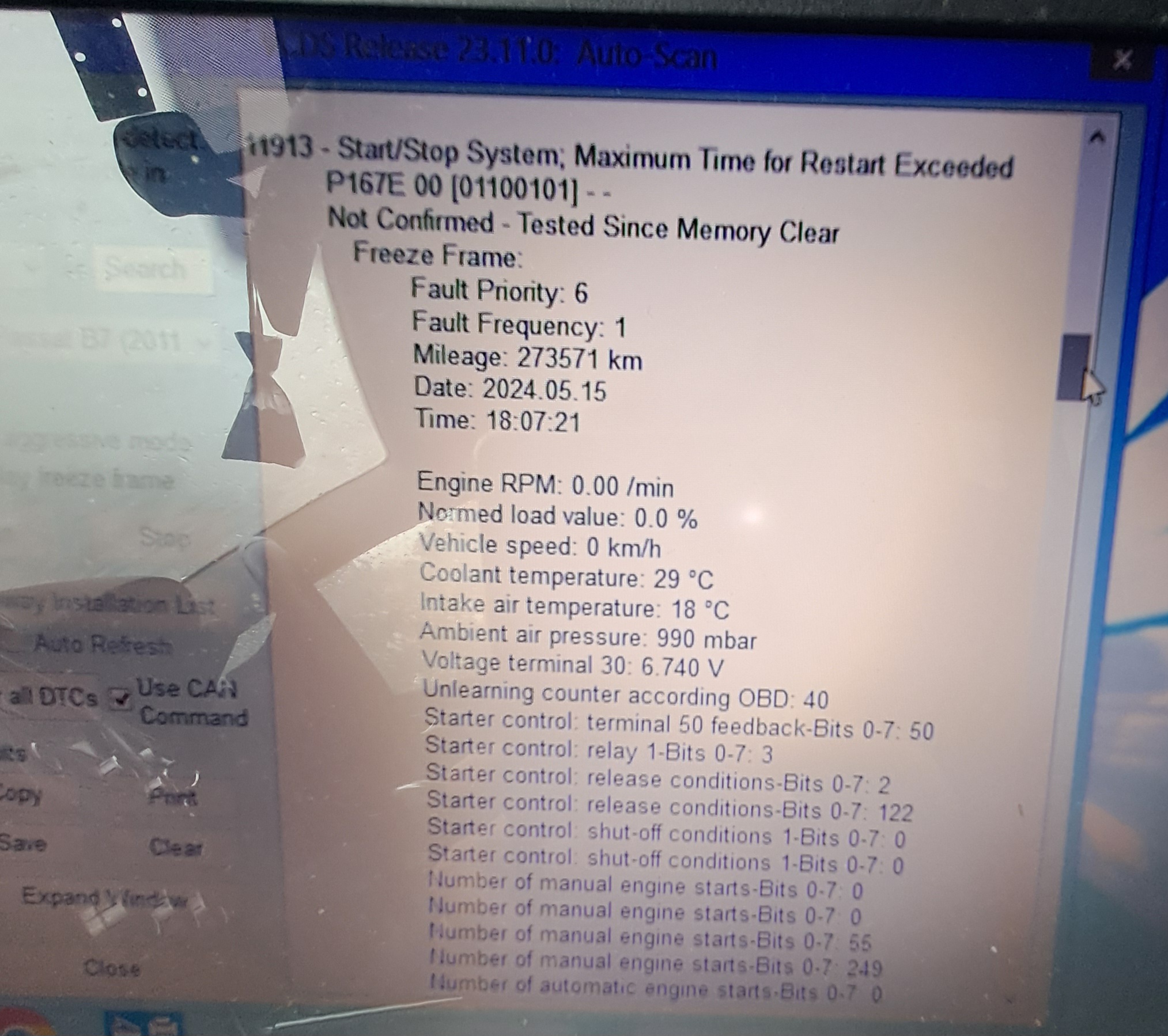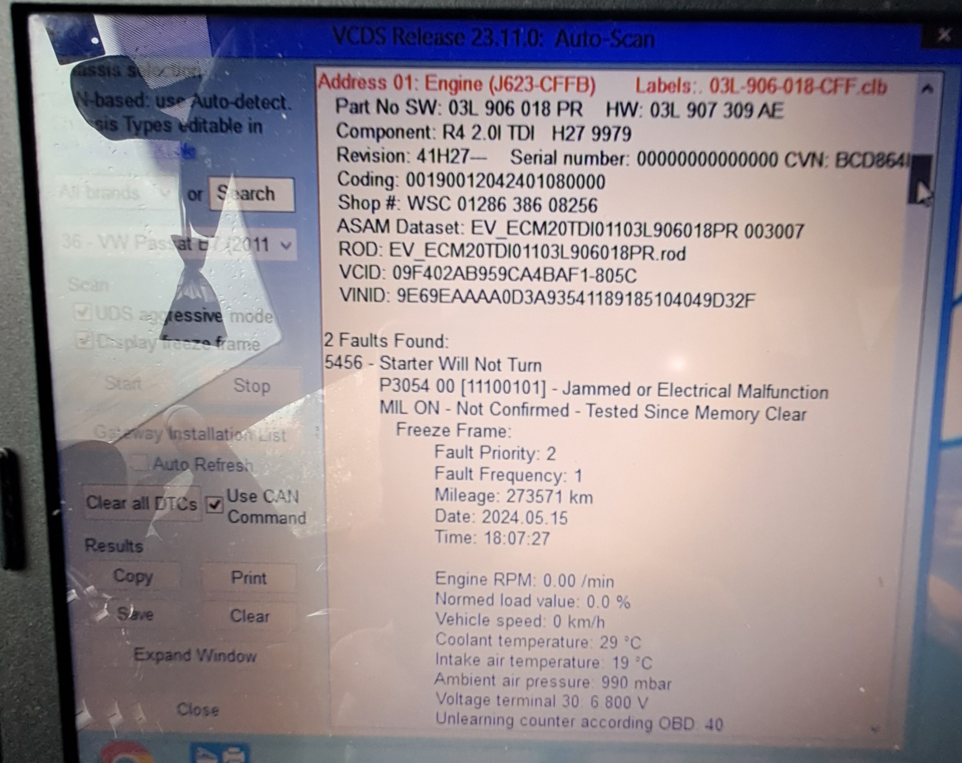Здравейте, Колеги. Ще си позволя да използвам темата на колегата, че съм изпаднал в паника. Току що реших да отидем да пазарим и пасатора изгасна пред нас и няма палене. Колата не върти лампата за подгрева мига. Сканирах я и излезе това...