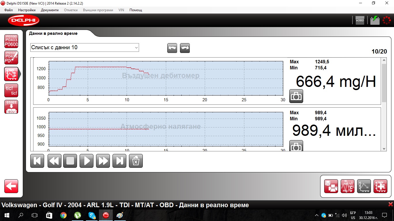 Разчитане на реални данни голф 4 арл