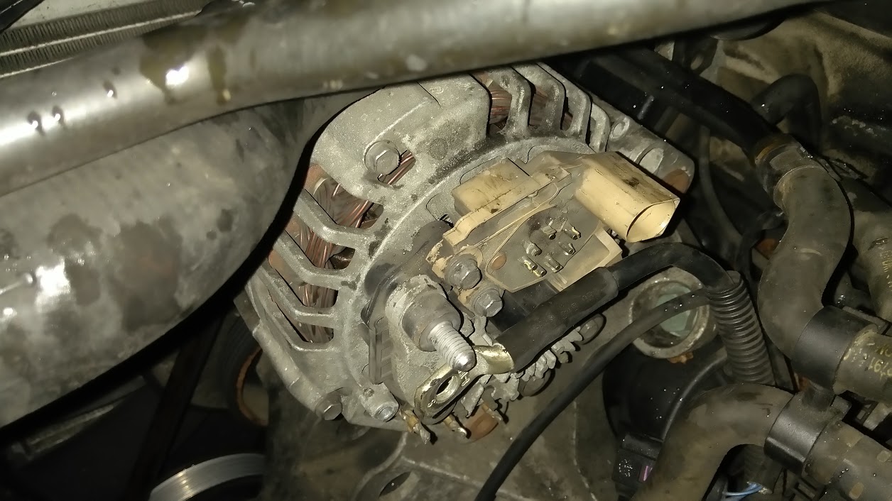 Днес сутринта ми се случи нещо странно. Паля тръгвам давам газ точно при подаване на газ радиото се рестартира както и показанието на борд компютъра изчезва за секунда и пак се връща, на празен ход няма проблем, отново давам газ и пак същото. Паркирах обратно колата и ползвах транспорт за да отида на работа. Интересното е , че точно вчера ми пристигнаха четки за алтернатор които исках да сменя защото знам , че са доста изхабени, но тва си го знам от една година и все се каня . Май точно навреме дойдаха. Педи 30 мин ги смених и направих някой снимки. Поствам темата , защото аз лично много се чудих какво да правя за да махна старите четки, нищо не ми помагна а голям зор видях , случайно след упорито търсене в нета намерих как става.