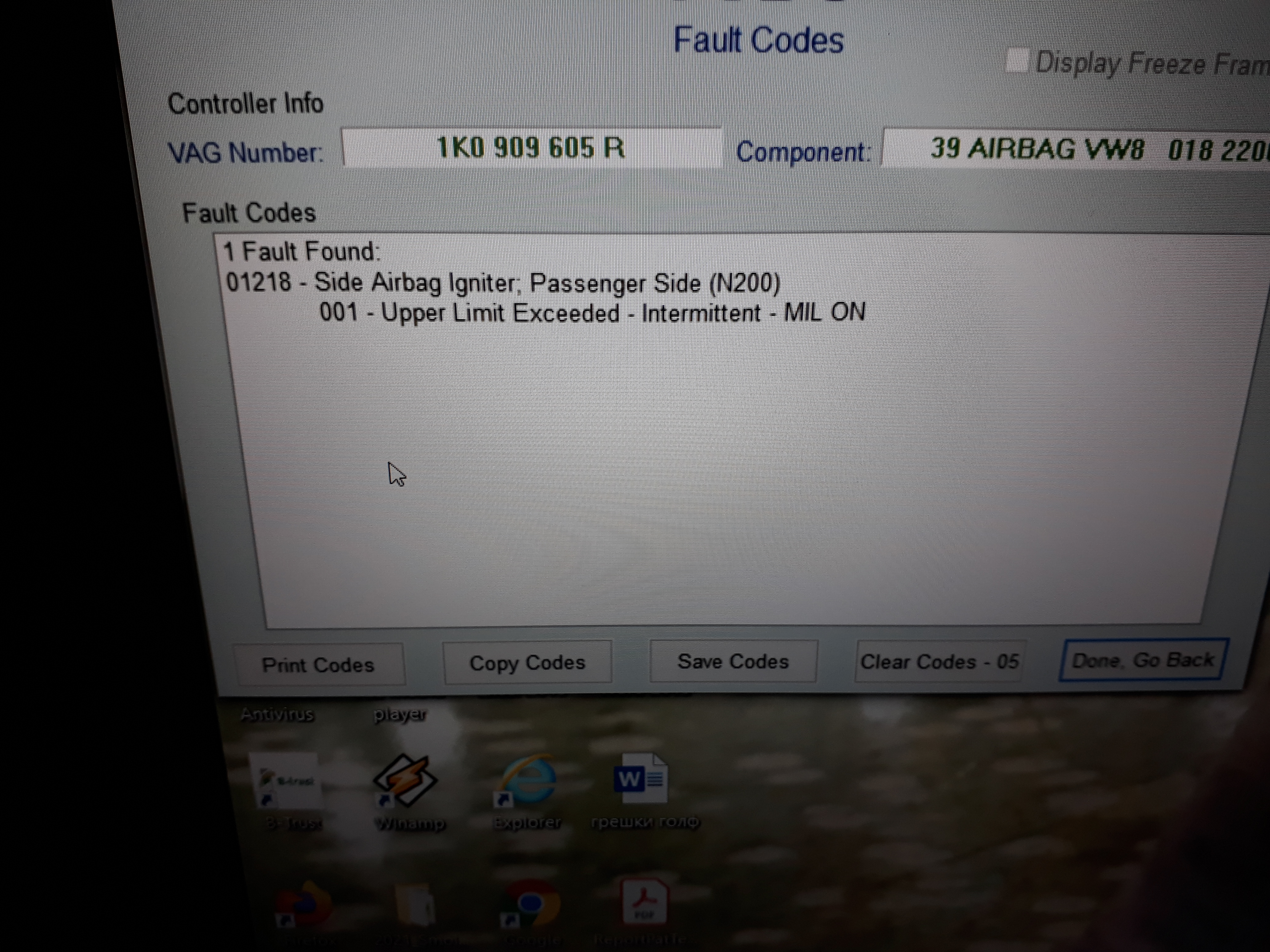 Re: Golf MK5 2006г. BLF 1.6 FSI- Грешка 01218 Airbag