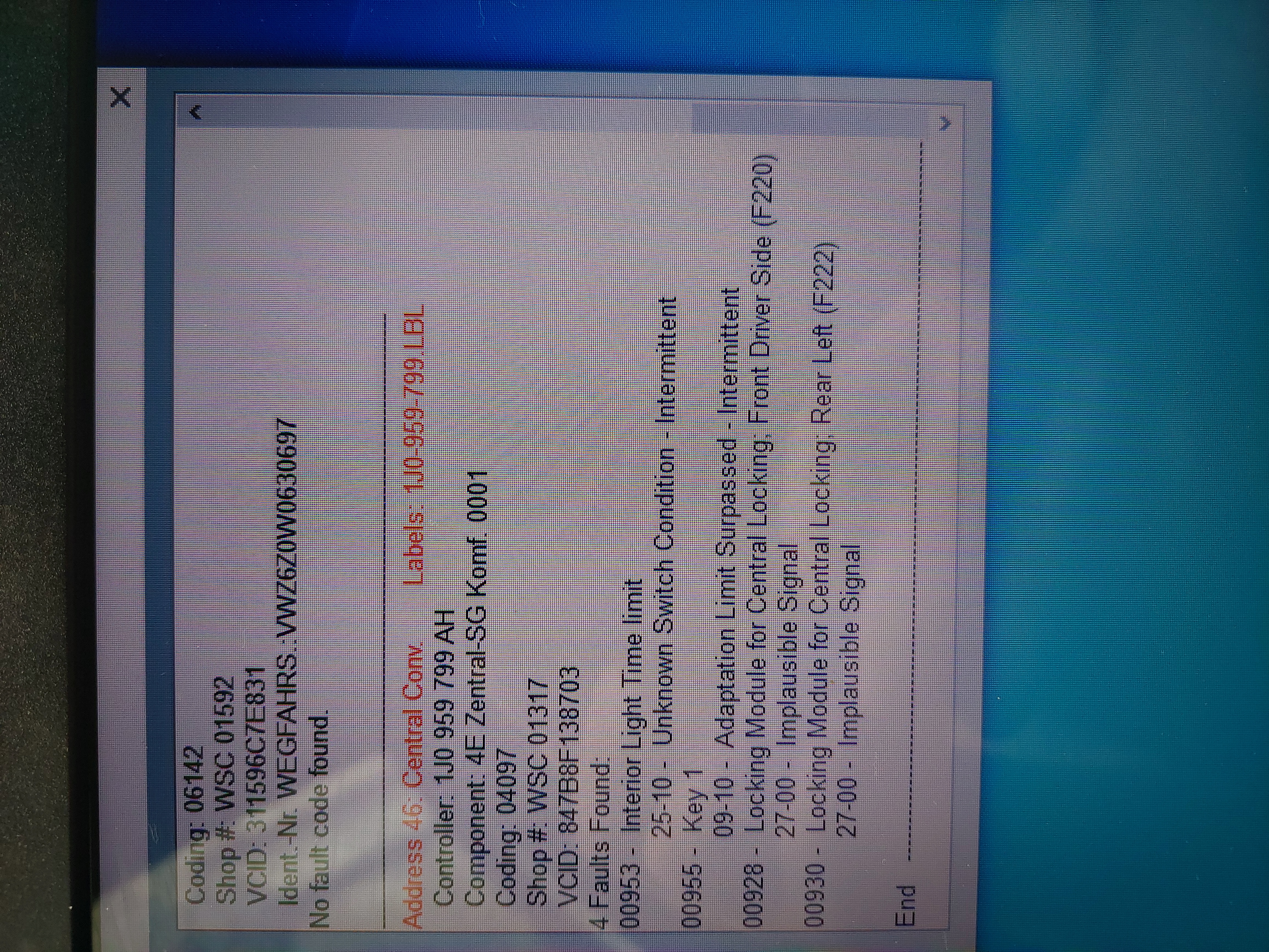 Имаш или прекъснати кабели в маншоните на вратите (багажника), или повредени прословутите микроключета в бравите на Голф4.