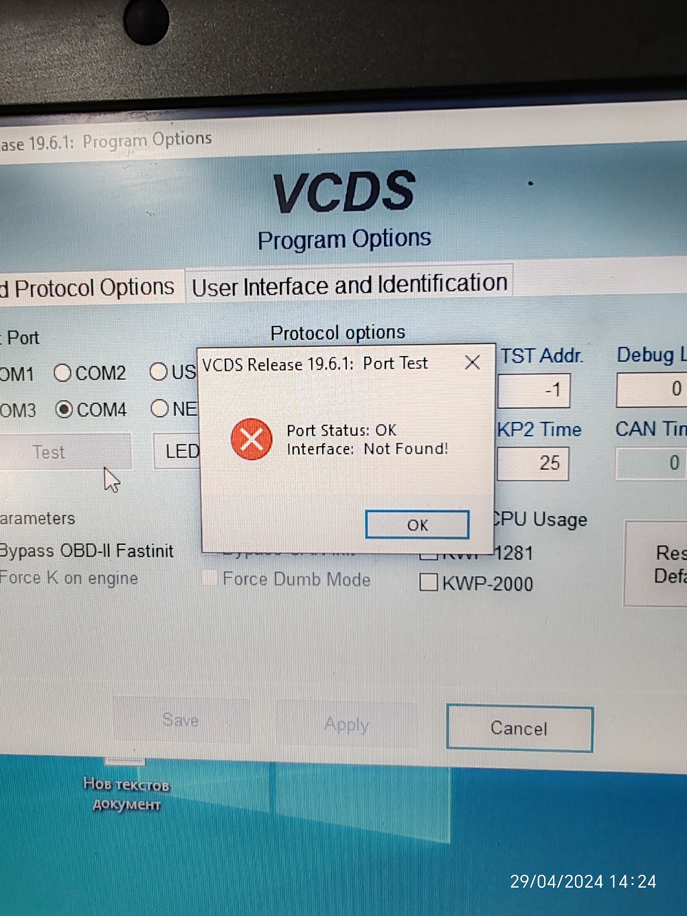 Ако въпреки това не става, вариантите са или кабела да се е заключил ако не е оригинален и софтуера се е ъпдейтнал, или самия контролер на конкретната кола да има някакъв проблем и да не може да се прочете.