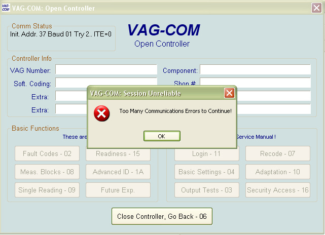 проблемат е следният:при опит за свьрзване с контролера на двигателя ми показва това сьобщение