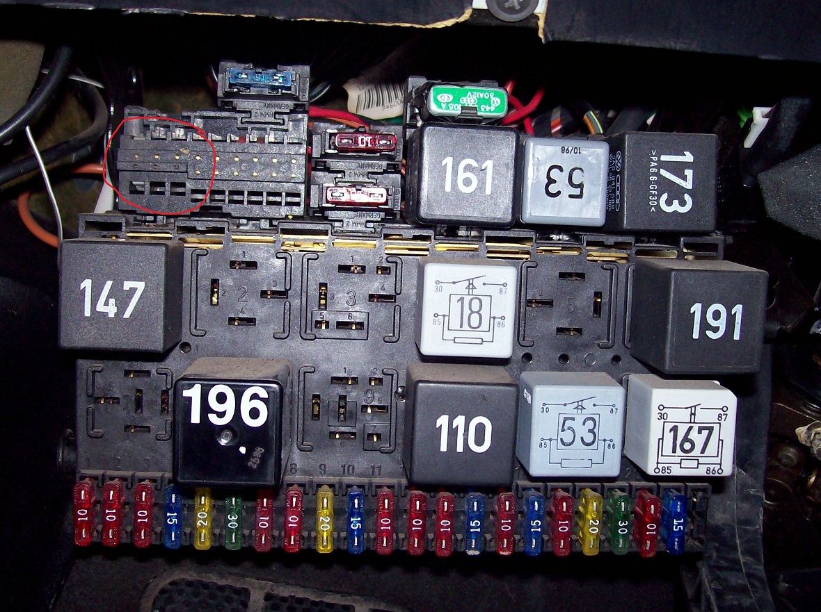 Та значи на старата конфигурация, нямах дори ECU (1.9D 1Y), имах букси 2х2 (черно и бяло). Но всичко това се премахна при смяната. Новия двигател + цялата електроника, вкл. табло с бушони, дойде от Сеат Ибиза 1998 AHU, със имобилайзер, вкл. буксата от снимката. За момента даже отключвам колата с VW ключ, а паля с Seat-ски.