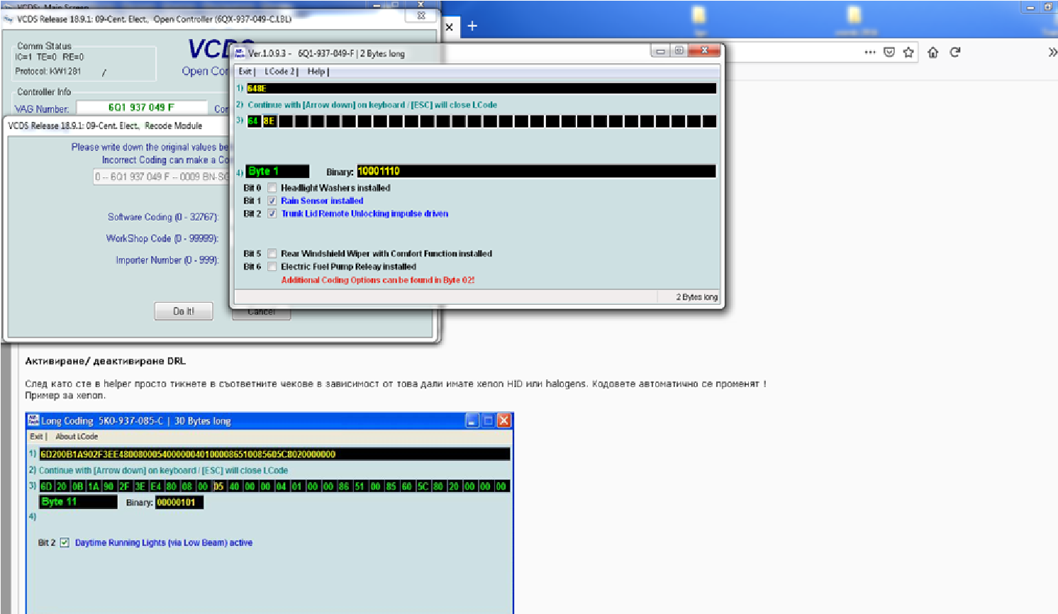 Не знам как да включа дневните светлини на Поло 2007 . Няма стойности в полетата. Какво означава това ?
