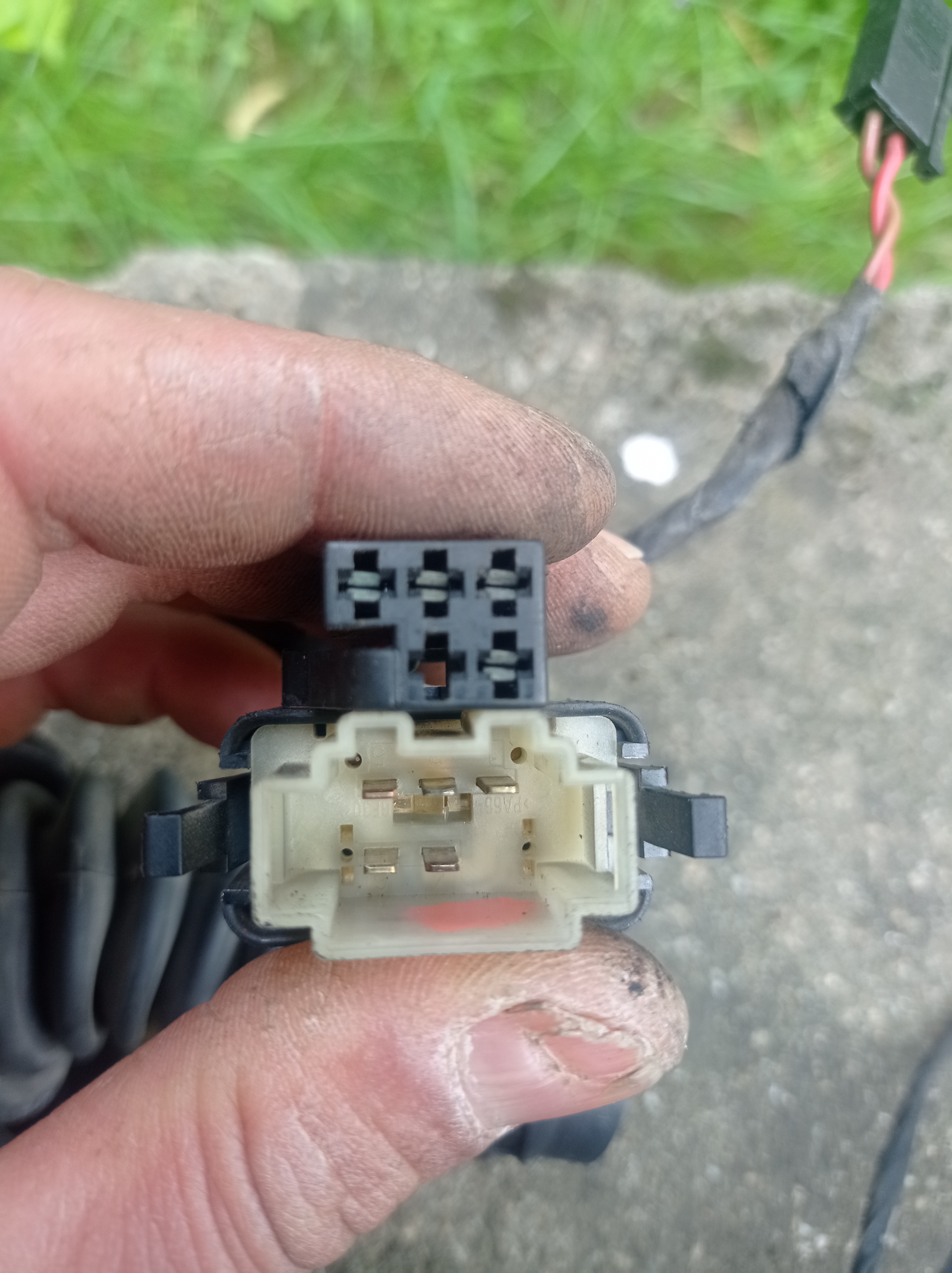 Оказа се , че след 2000г копчетата са различни. И старото копче при натискане прави пълно късо между един червен с жълта ивица кабел и един кафяв, които са разклонени в снопа от по-дебели кабели със същите цветове. Та даже и бушон не изгоря в колата. Щетите бяха само по кабелният сноп.