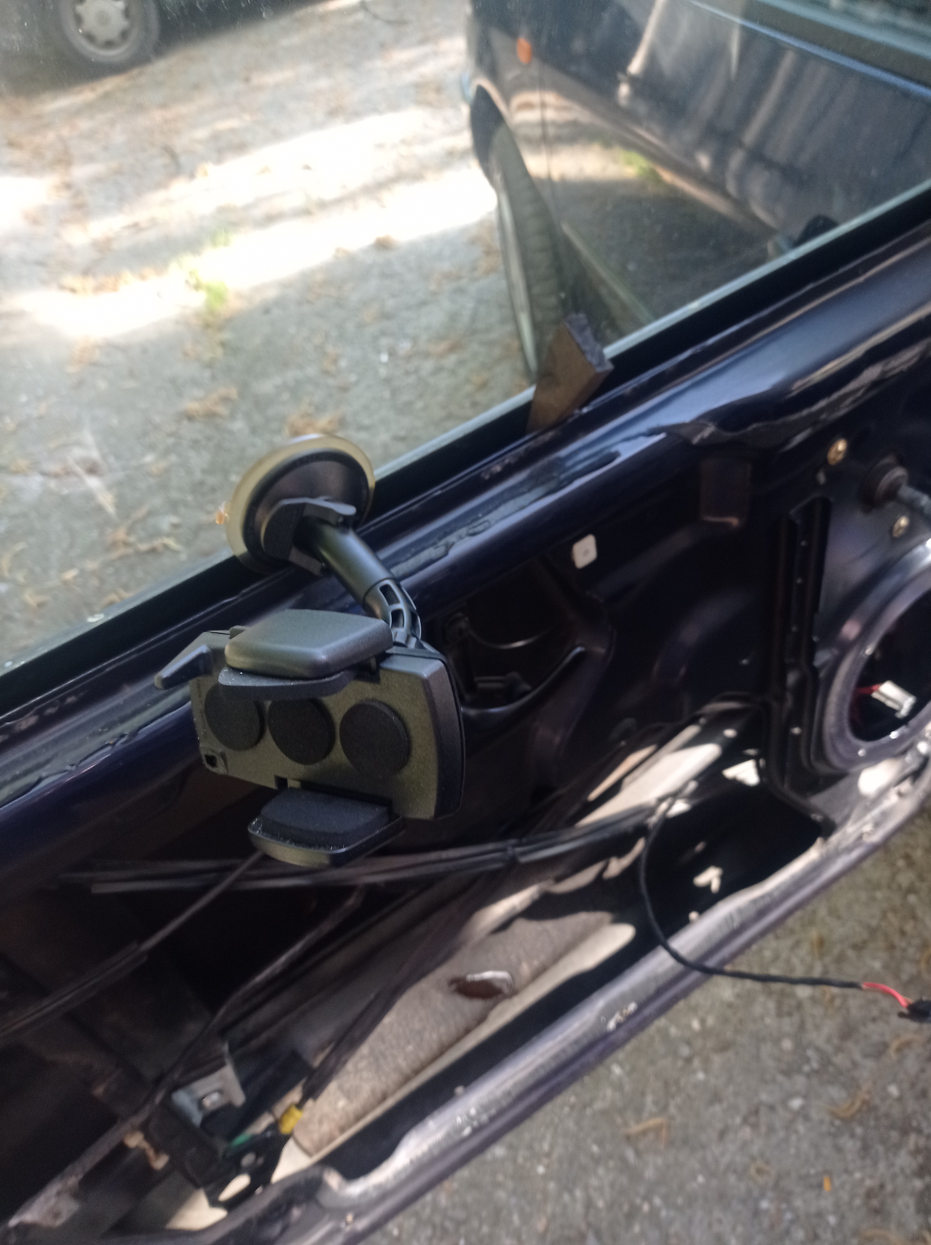 Щом освободим стъклото го вдигаме горе и го осигуряваме да не падне. ( С подръчни средства разбира се :mhihi )