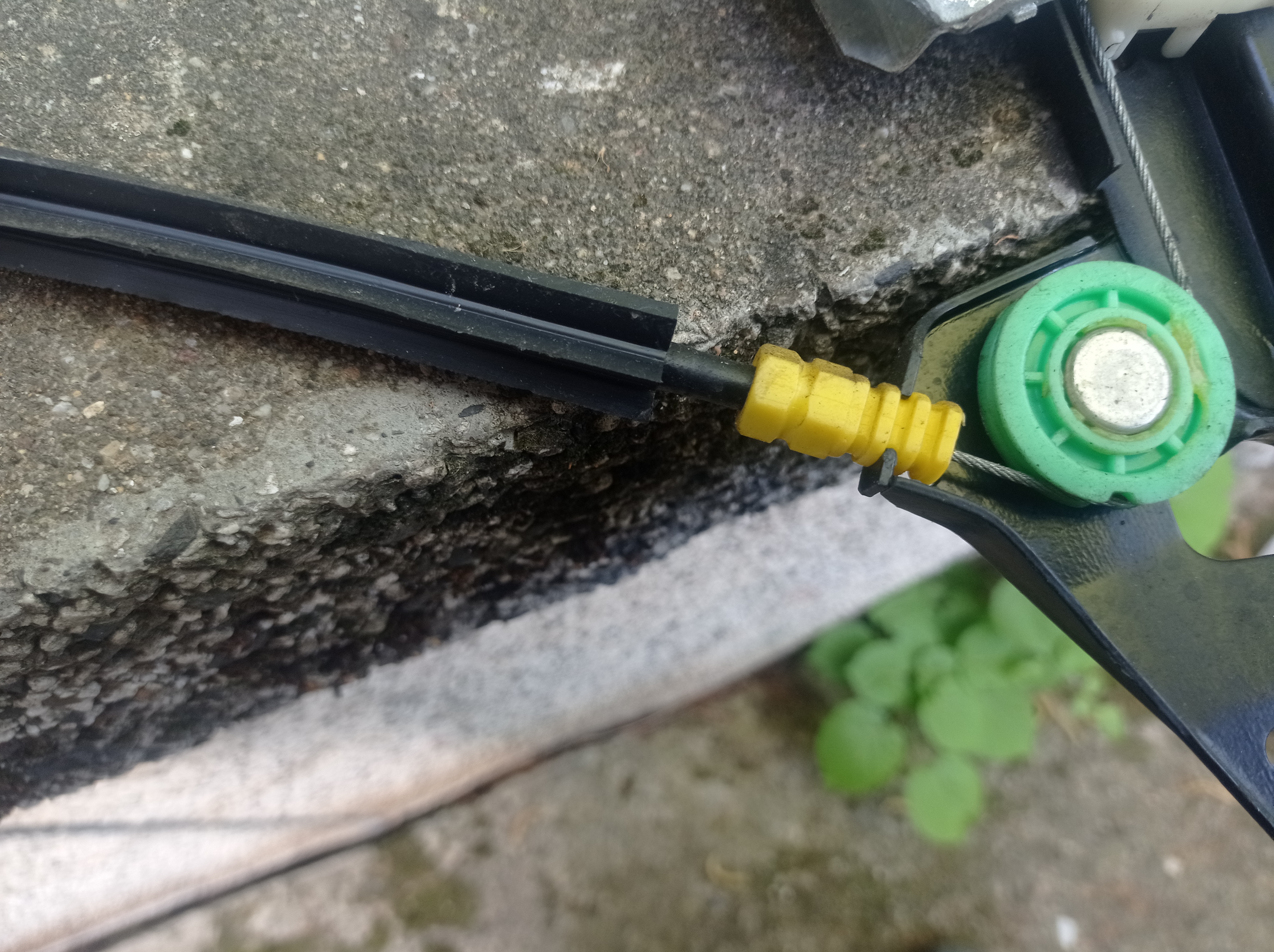 После изнизваме жилата от ролките и плъзваме плъзгачите на горе за да излязат от релсите. Откачаме жилата от плъзгачите и по обратният ред сглобяваме.