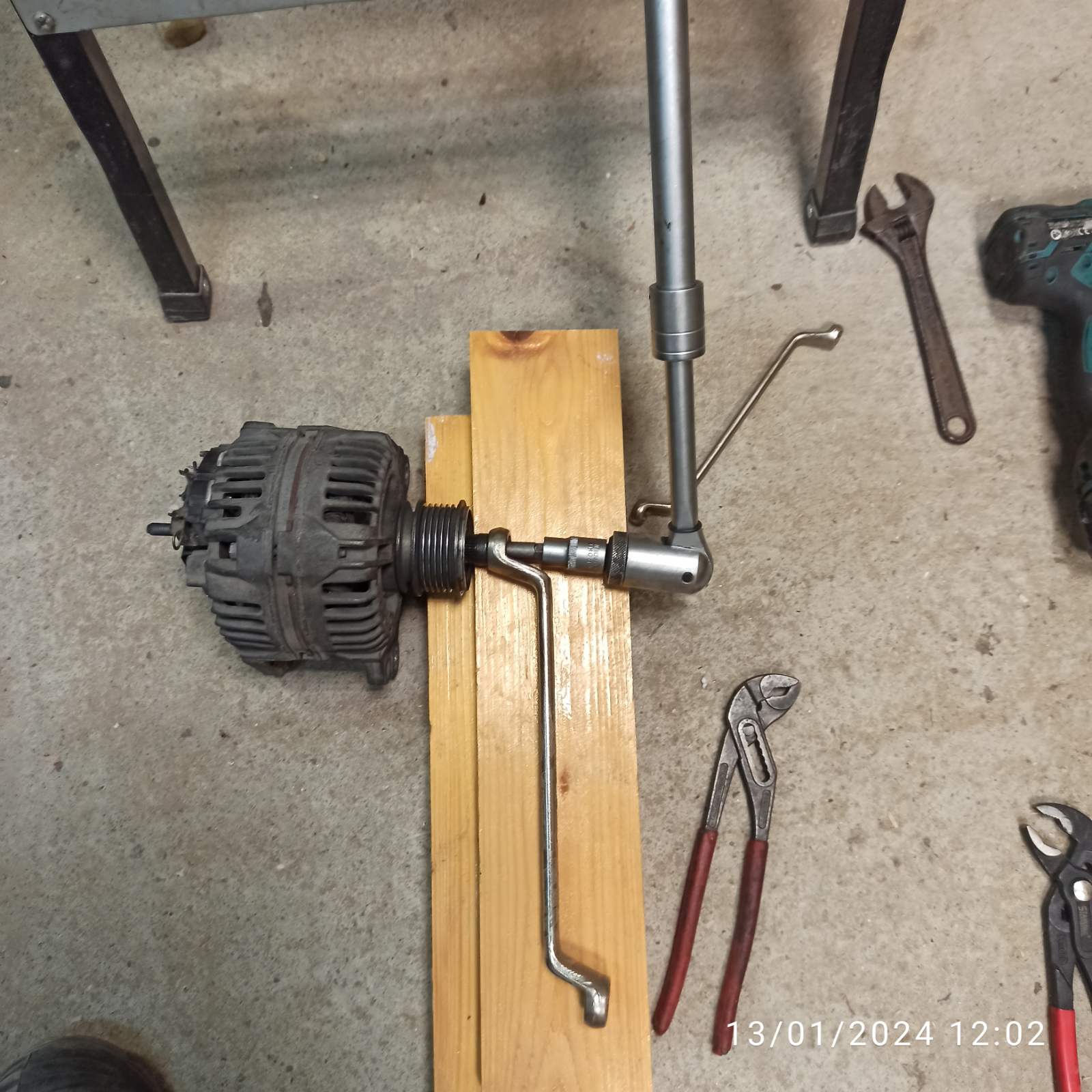 Скоро ми направи впечатление, че колата е много шумна сутрин и имаше метални скърцащи и тракащи звуци при първото палене. В движение като позагрееше утихваше, но беше по шумна от обикновенно. Единия ден погледнах когато тракаше на студено и се оказа че обтяжната ролка подскача и обтегача удря в ограничителят. Ролката на алтернатора(свободен ход-фрайлауф)блокираше на моменти и беше разтегнала ремъка отделно и обтегача изкривен и обтяжната ролка там седеше накриво. Отделно защото паля в подземен гараж при това тракане се виждаше как се променя интезитета на фаровете, мигаше.