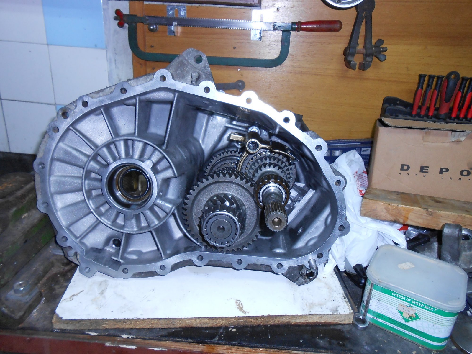Остана да запушим и последната дупка по кутията -първичния вал. Така изглеждаше преди разглобяването: