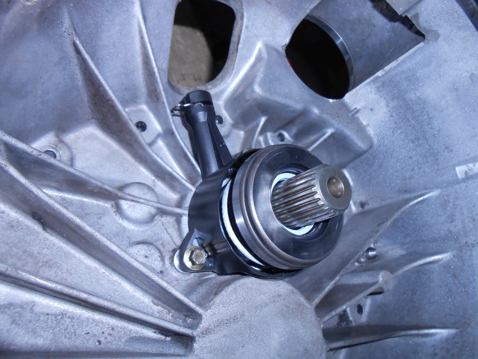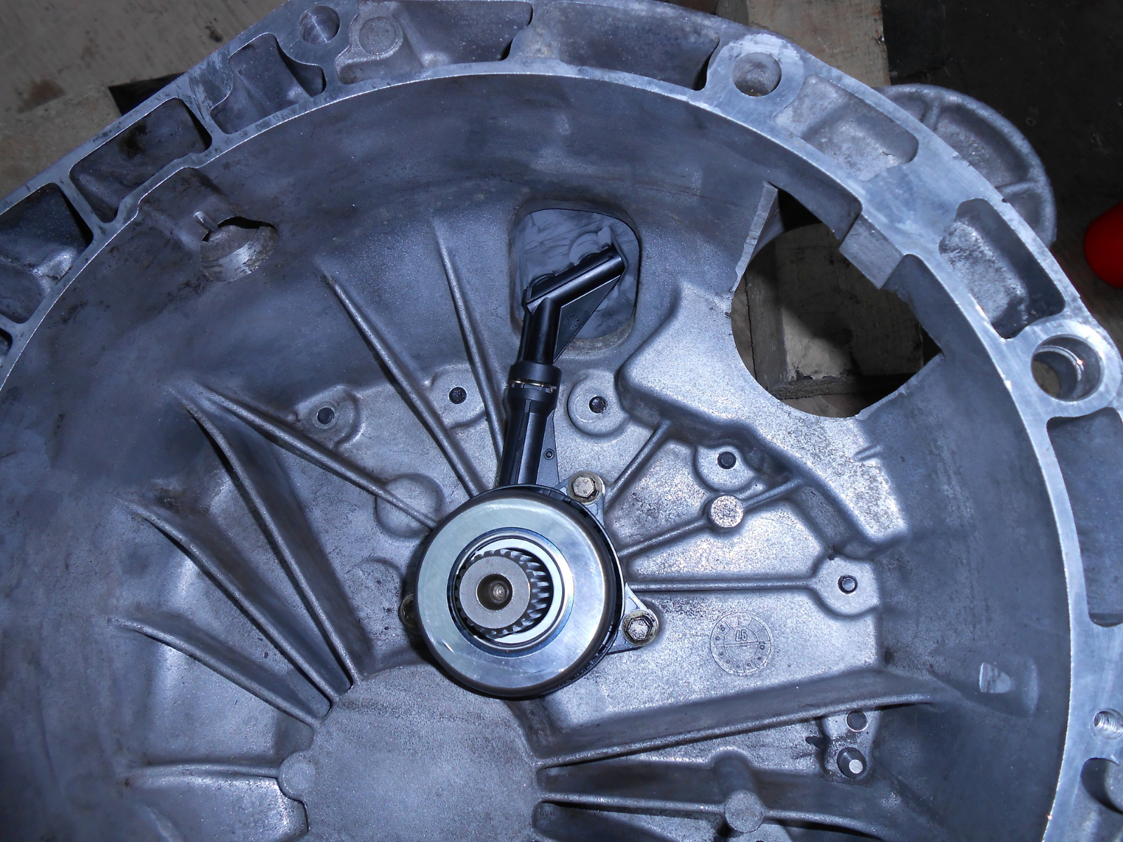 Следва монтаж на съединителя. Намазва се шлица на първичния вал със MoS2 смазка , и му се надява феродовия диск. Изскочилата настрани смазка се забърсва. После си сглобяваме съединителя, намазваме и челото на аксиалния лагер с MoS2 смазка. И монтираме кутията към мотора. От тея процеси нямам снимки
