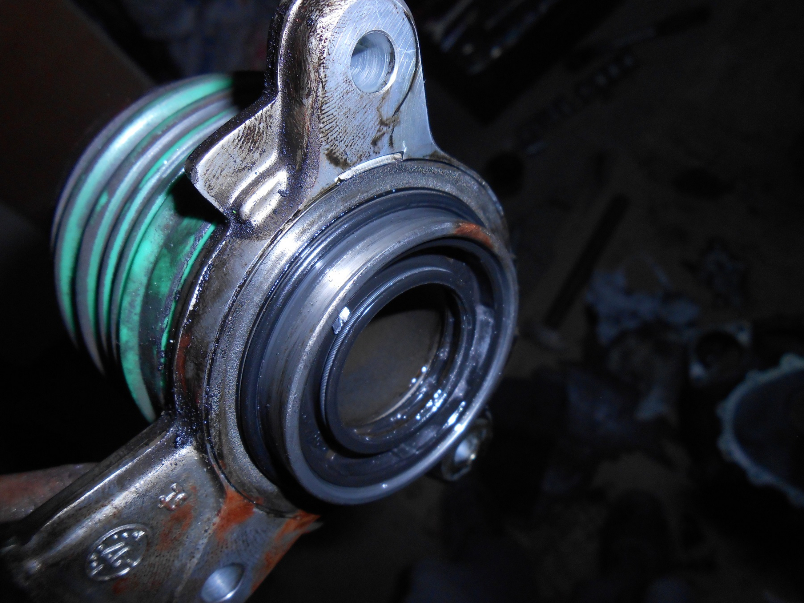 . В инструкцията и пише (т.е нарисувано е) да се уплътни със силикон (някакъв Loctite). Поради липса на такъв я уплътних с Рейнцосил. Новата помпа е от комплекта съединител LUK, който купих поради износване на моя. Странен комплект. Притискателя е Люк, феродовия диск- Валео, а лагер-помпата е Шафлер. В началото я гледах с недоверие, понеже е пластмасова, но ми казаха, че Шафлер са свестни части, пък и старата е на 20 години и почти 300 000 км. Помпата се разделя от щуцерите за спирачната течност и обезвъздушаване при монтажа.