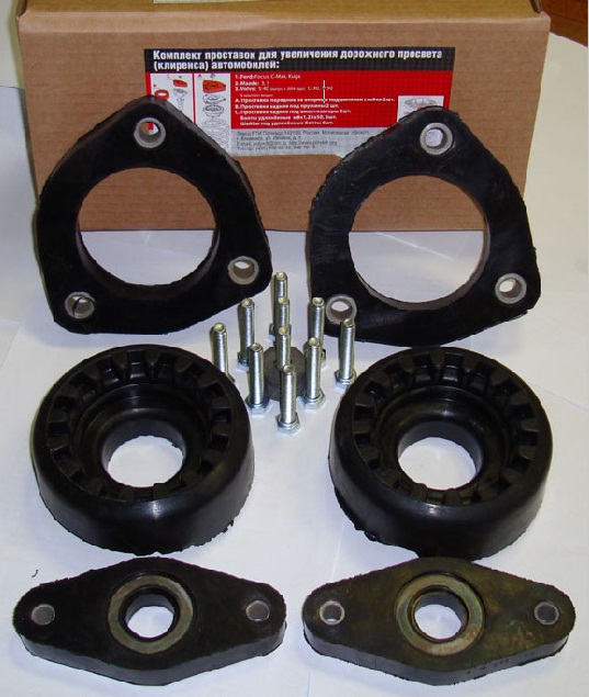 Братушките имат в продажба комплект за увеличаване на клиренса 12000 рубли струва с банков превод и предварително уточняване по телефона-отпред са триъгълни с височина 3 см.и им викат "проставки" ,задните са гумени и се поставят от горната страна на пружините с височина 5 см и ромбоидни над горната опора на амортисьорите