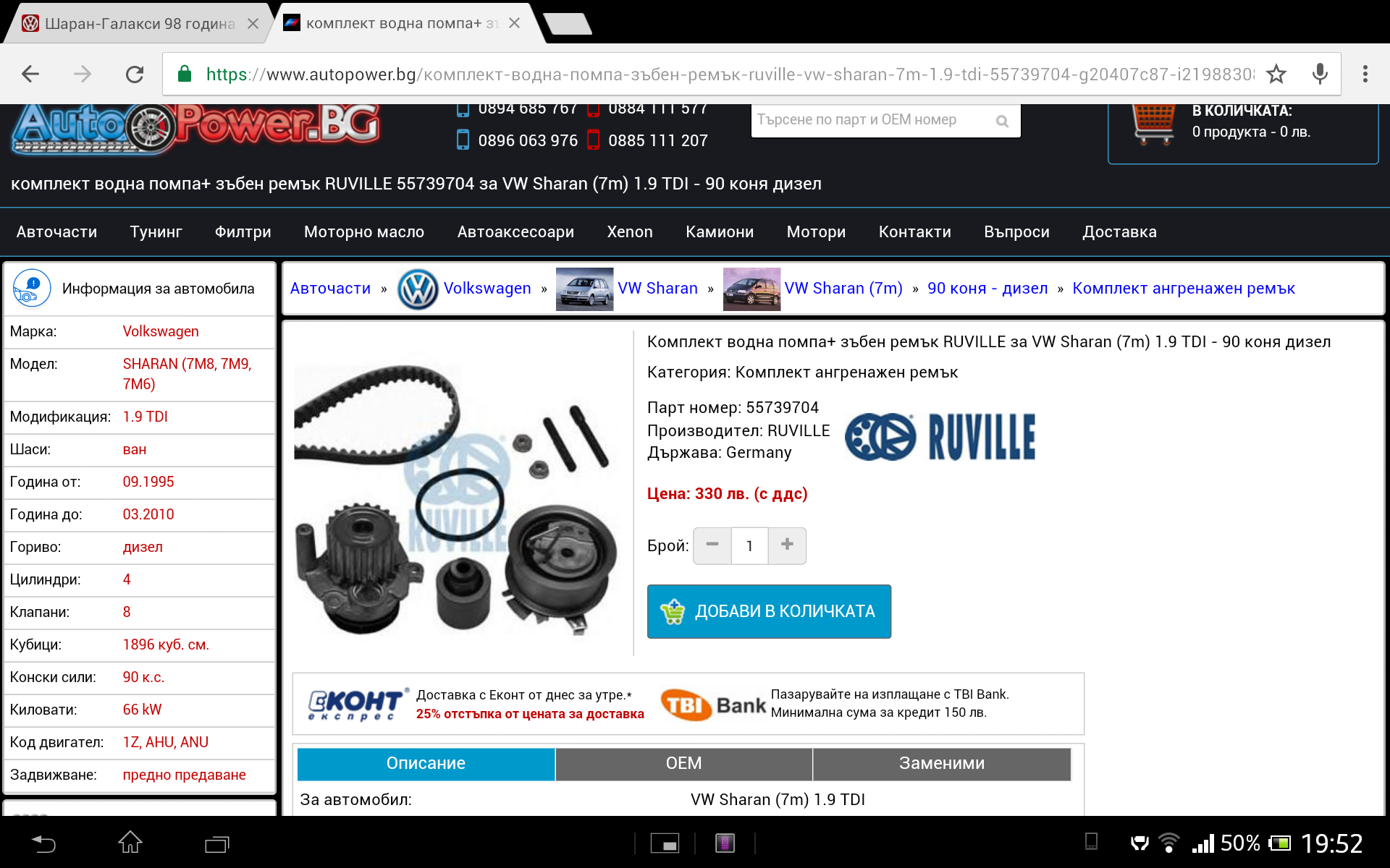 Re: Шаран-Галакси 98 година 1.9 ТДИ 90 коня-обслужване-ремъци, масло-цена