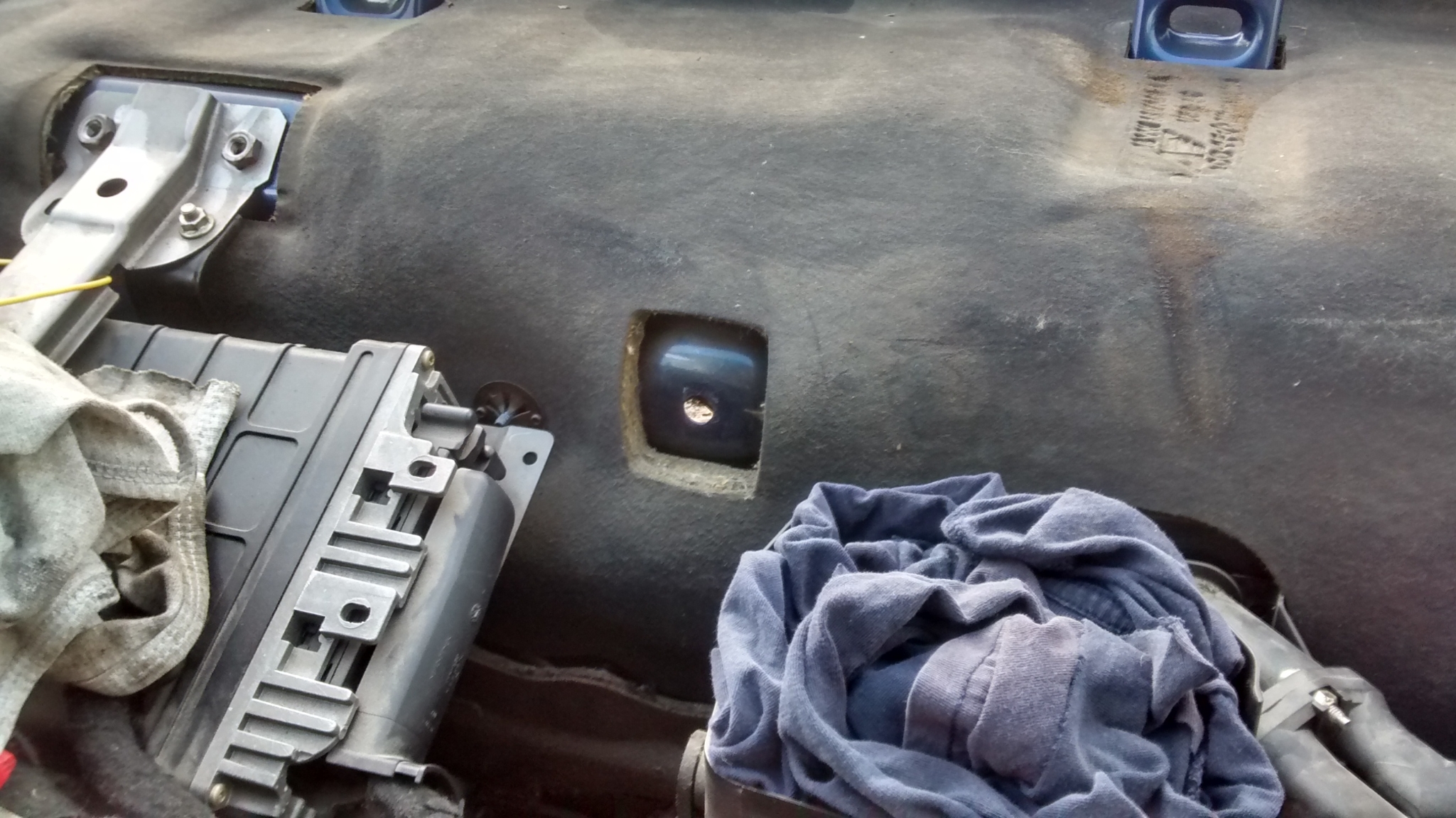 IMG 3 - в ляво се виждат2 заварени гайки - болт с камък 13 досъпни от двигателен отсек. М/у компа и парцала скритата лимонка отвътре.