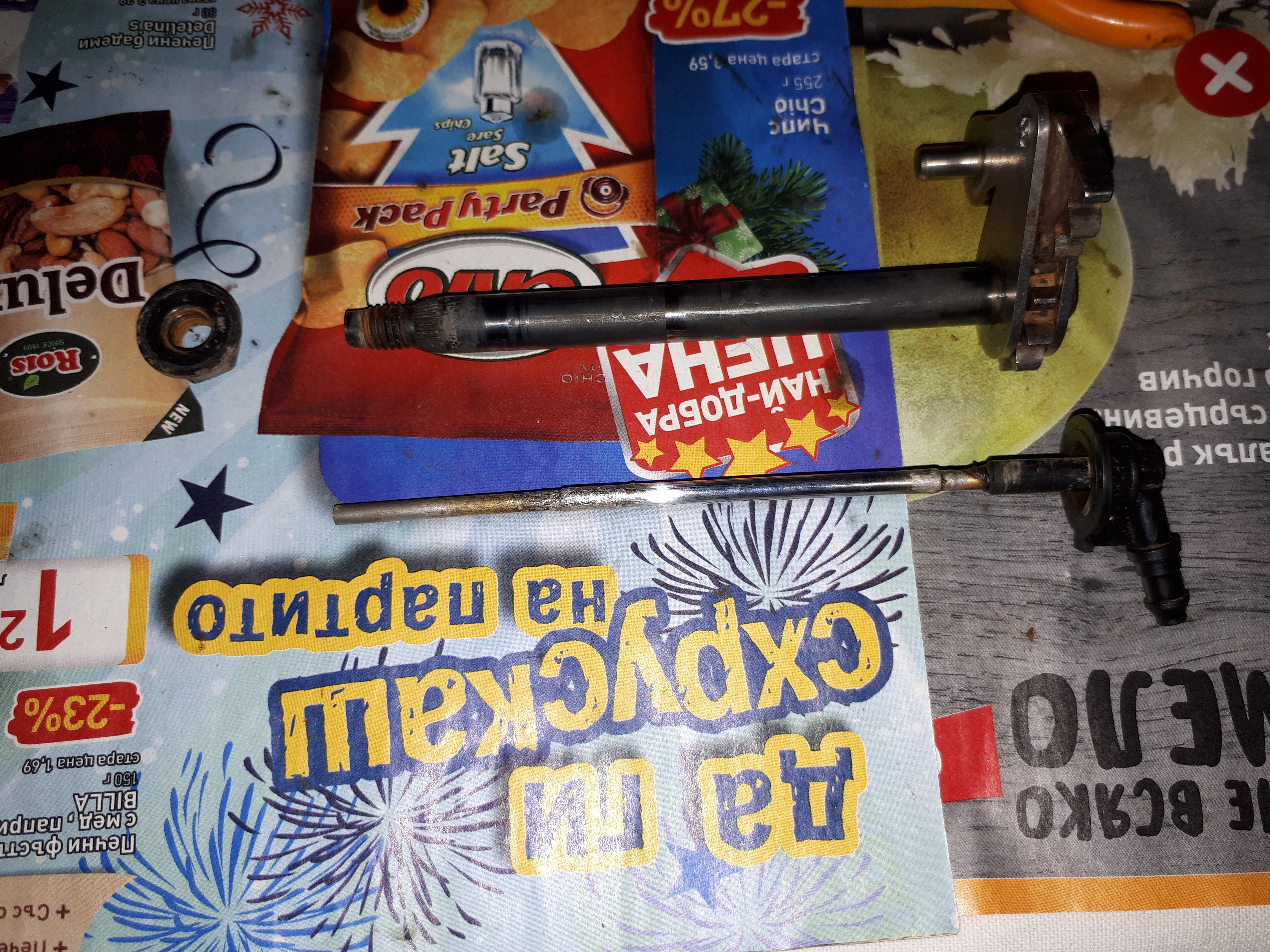 Ремонта протече със сваляне на машинката и последващо разглобяване, наставяне на месинговата тръбичка(около 3,4мм) с тръбичка от сегмент на антена от радиоприемник и след калайдисване и запояване на трите части стана като нова. Важно!