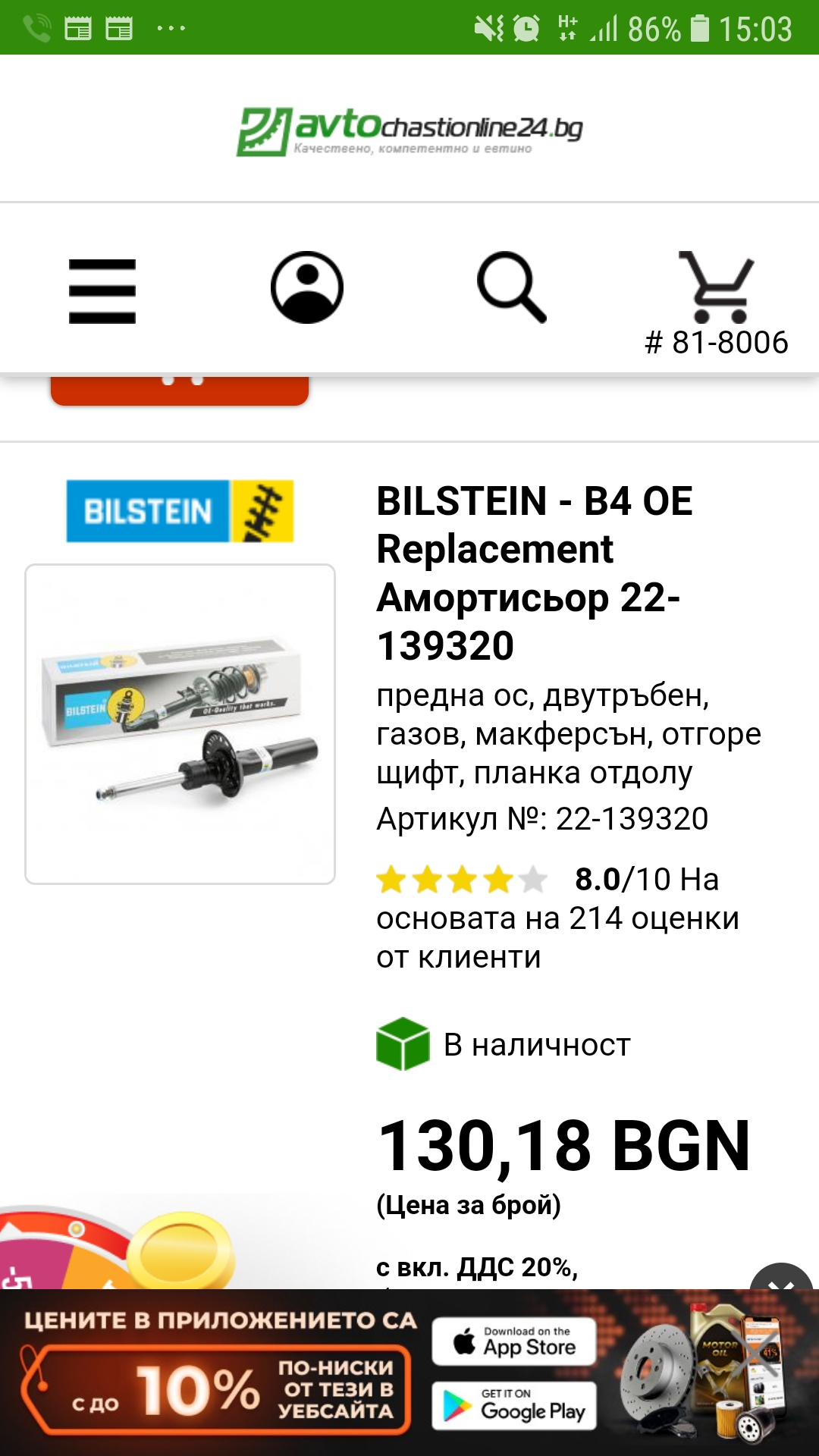 Re: VW Touran 2,0 BMN 125kw/06.2006 смяна предни амортисьори
