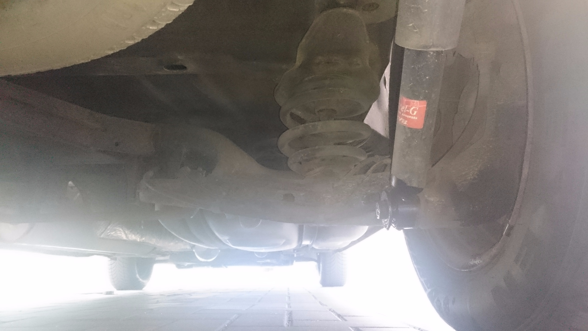Направих снимка отдолу, ако не е много ясно, утре ще направя друга. И сега малко по подробно по темата. Пиша ви от Германия и след месец имам преглед. Задната пружина от лявата страна е счупена и колата е леко наклонена. Бях на 2 майстора и двамата ми казаха, че трябва да се сменят и двете пружини, не ставало само едната, но проблема е, че
