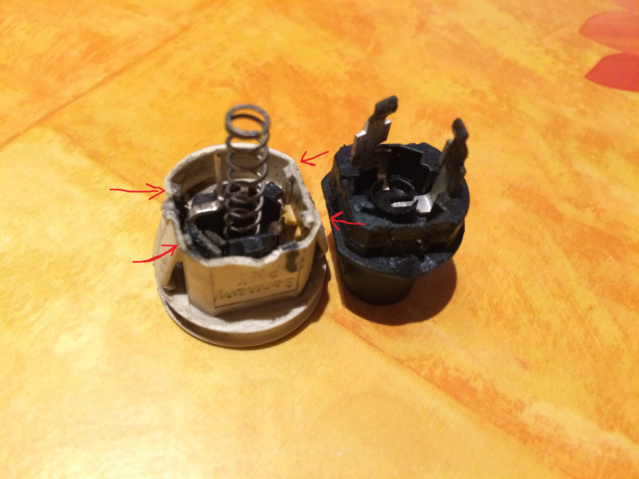 Но , при мен е мнооооого зацапано ( сигурно и затова не е помогнал контактния спрей ) , не успях да го почистя само със спирт , а се наложи и търкане с отверката.Може би е по подходящо шкурка/пила.Струва ми се , че изкривих едната пластинка докато търках , така че може и да не работи коректно вече.