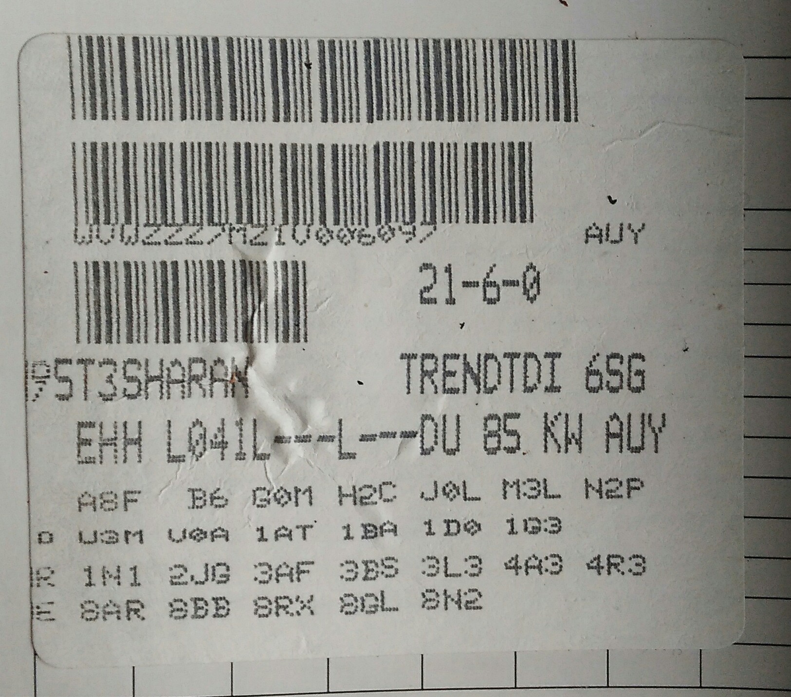 Здравейте Шаран 2001г.със стария ключ е без бутони,намерих ключ от Алхамбра сгъваем смених му само перото защото е здрав, имобилайзера е ясен с ПИН кода на таблото и ще се обучи, обаче не мога да обуча дистанционното.Ключа премигване като го натискам.Вариантите са или ключа свети но не излъчва сигнал или модула не поддържа такава опция,или подържа но е заключен.Прилагам снимка на бялата лепенка в багажника,ако някой е запознат къде се намира номера на модула дори не и целия номер да ми пише да ли,ще стане.Поздрави.
