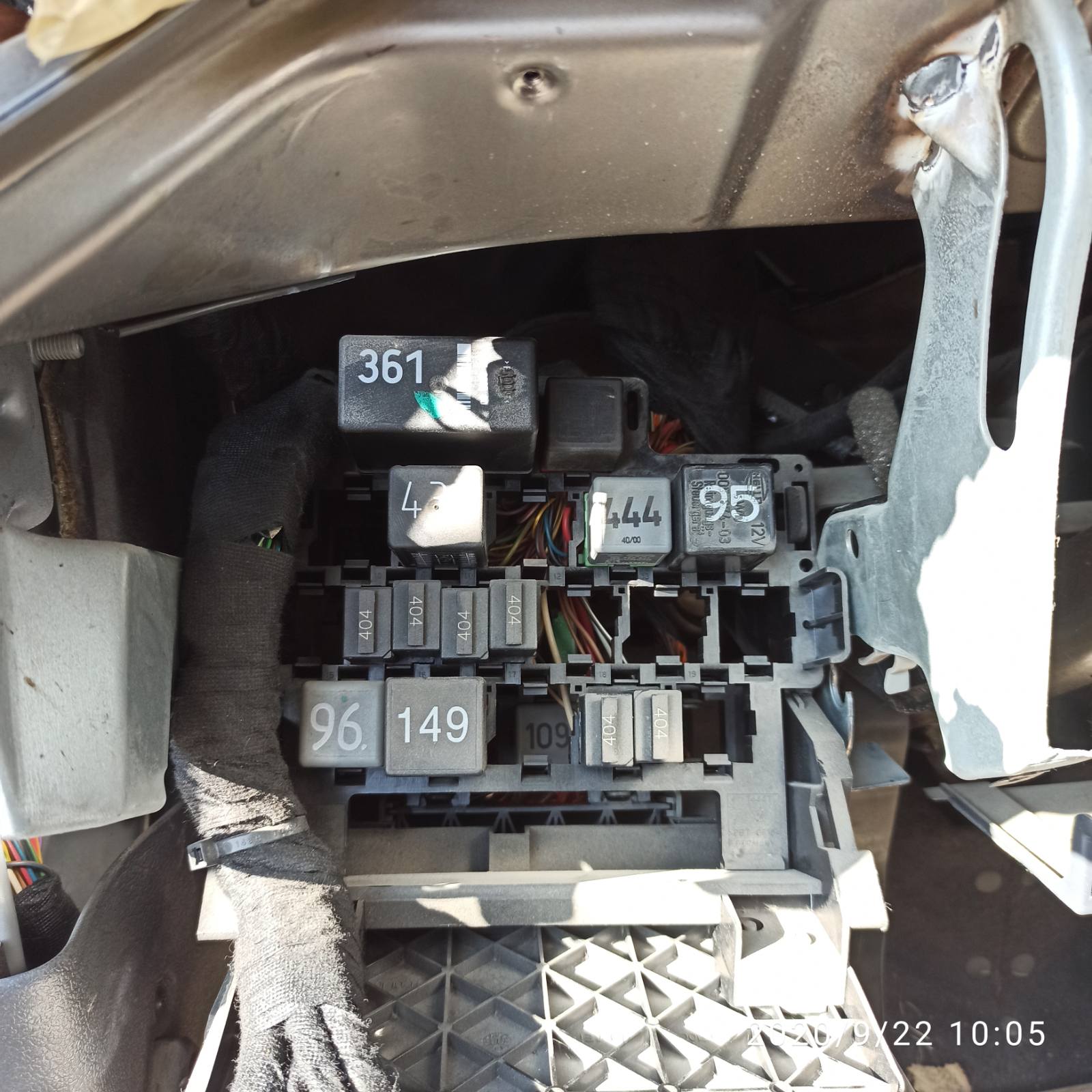 )Откачих куплунга и запалих, работи точно 5 минути без нея на място и при подаване на газ загасна колата. Като включих буксата, колата запали пак много бавно докато подкачи нафта. Помпата се чува и работи добре, бушона е здрав, та предположих че има някакъв проблем с релета, от четене на форума реших че е 109(Реле 109 не видях, а то било отзад по късно го мернах зад предните релета, а и спиралката си свети при палене), та разглобих капаците и свалих надолу бушониерата и на допир ми направи впечатление че реле 53 е горещо. Беше на втора или трета позиция до 361, извадих късмет че имах някакво реле от опел със същата схема и ампери и го боднах на неговото място. Колата запали веднага. 3 дена карах със свалени карантии за да се убедя, че проблема е в това реле, пали и върви перфектно сега. Впоследствие зачетох(а трябваше това да е първо