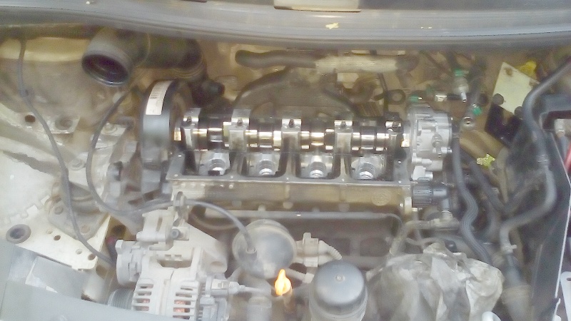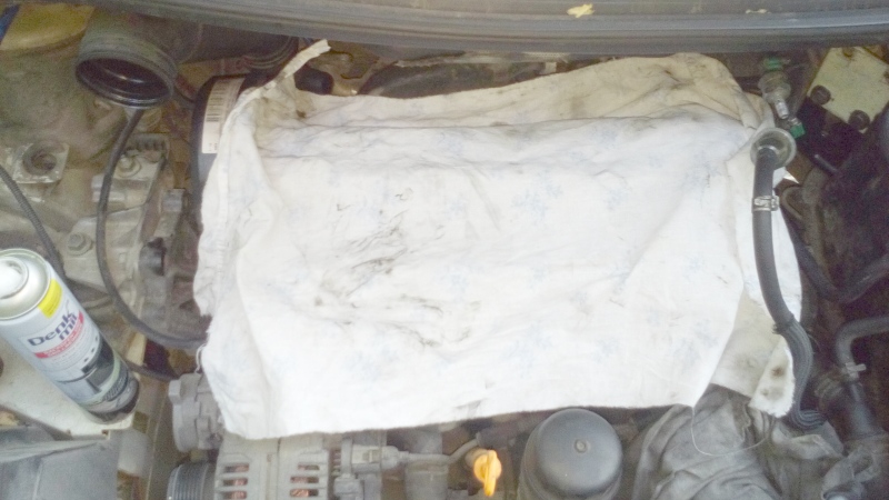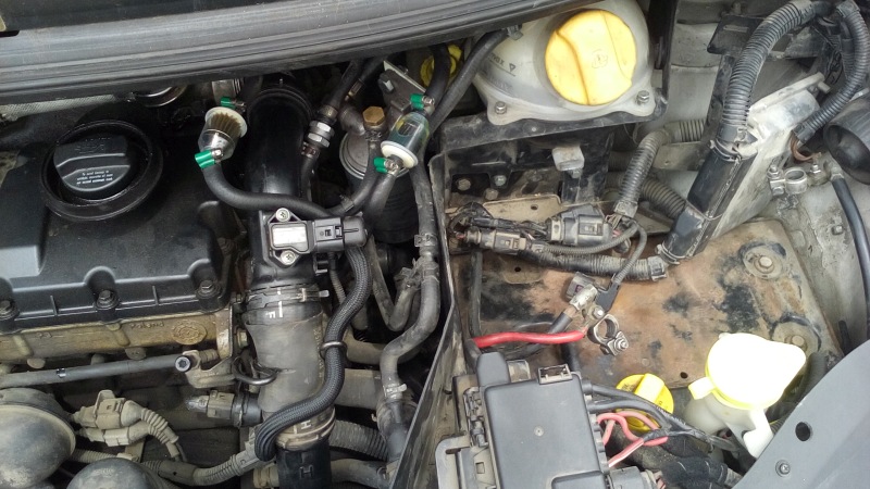 Дойде момента и скочих върху двигателя. Първо извадих въздушния филтър. Всички тръби към него както и S образната тръба на изхода на картерната вентилация. Ако ми беше казал някой, че ламарината под чистачките и над двигателя се маха щях да икономисам мнооого време. След това извадих тръбата от изхода на интеркулера към ЕГР-а. От страна на ЕГР-а се маха като се издърпа една телена скоба. Не съм снимал това разглобяване защото се оказа, че зад двигателя е голяма смрад и нямаше възможност да се мия постоянно. От ЕГР-а и от вентилацията на картера е избивало масло. Оляло е всичко и се е налепило с пепеляк. Силно препоръчвам ако не правите този ремонт по спешност като мен на поляната да идете със свалени капаци на мотора на автомивка и да измиете с обезмаслител всичко по капака на клапаните и отзад до където стигнете. За съжаление Галаксито е особено неблагодарно за работа в това отношение. От своя страна аз съм много едрогабаритен. Едва успявам да обгърна мотора и да бръкна с ръце от двете страни. За да развия всички болтове на капака на клапаните се наложи да сваля и ЕГР-а който е комбиниран с една дроселова клапа за меко гасене. Държат се на 3 шестограни болта. Вижда се само един. Другите с напипване. Наложи се от лидълския комплект да отрежа едното рамо на дръжката на един шестограм за да мога да въртя докато развивам (също няма нужда ако се свали ламарината). Естествено сваля се и нафтовия филтър и всички тръби покрай него. Сигурно щеше да е по–лесно ако бях свалил и разширителния съд, акумулатора и кутията му, но като си спомних само каква хамалогия беше и там и ми мина всякакво вдъхновение. Според колеги от Ауди форума работата по смяна на дюзите била два часа, а аз два дена разглобявам. На края свалих капака.