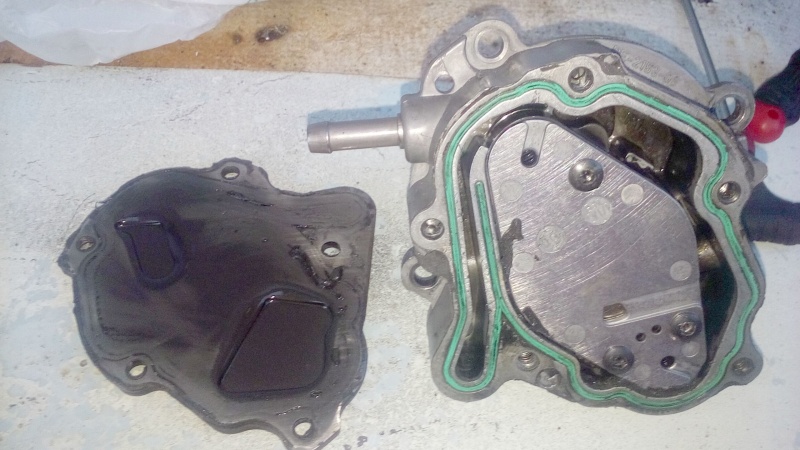Ефекта беше положителен. Пяната остана само в тръбата на обратната нафта, а другите се изчистиха и си текна чиста нафта. Докато се занимавах с тези еквилибристики усетих , че нафтата много силно мирише, но на бензин. Светна ми, че последното зареждане в Шел е сбъркано. Не е ясно как при положение, че веднъж уточнявам с бензинджията на колонката и веднъж казвам на касата какво плащам и на коя колонка, но като не си пазя бележките си е за моя сметка. Източих всичко от резервоара и заредих една туба чиста нафта. Така поне установих, че електрическата помпа в резервоара работи и проблема не е от нея. Ефекта с хълцането си остана. Реших да послушам патилите и на принципа по-малкото зло свалих тандем помпата. Разглобих я и занесох средната секция на стругар. При нея се разбива щуцера за вакуума. Една от детските болести на мотора, но според мен е нарочно оставено слабо място. Не може всички други щуцери да са направени както трябва, само този по различен и то по много калпав начин. В него имаше и клапан който аз изхвърлих и замених с външен клапан за гориво. Продават се по магазините и са супер надеждни. Имах останал от предната ми кола. Загледах се в изхода на обратната нафта. Там също трябва да има клапан който според руснаците се повреждал. Също слабо място. Е моя не работеше. Решението беше ясно. Същия външен клапан за гориво. Закупих и нови гарнитури за помпата, но когато тръгнах да я сглобявам установих много дълбоки наранявани по работните повърхности и на двете помпи. Личеше си, че са много работили доста боклуци са минали от там и са драли по алуминия. Можех да полирам елемента и едната плоча на водна шкурка и стъкло, но другата повърхност нямаше как да обработя. Решението беше друга помпа. Закупих една втора употреба с уверението, че е работеща, но когато пристигна се оказа друго. Щуцера и се въртеше свободно, а който я беше разглобявал си беше оставил ръцете вътре. Вместо да закупи нови гарнитури този “технически гении” беше мазал плочите със силикон. Сами се сетете ако я бях монтирал директно какъв автогол щях да си вкарам. На снимките може да се види съдържанието на нафтовата част на помпата. Оставям без коментар.