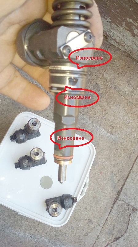 Поръчаната нова гарнитура на Елринг се оказа, че не пасва съвсем. Две чопчета точно на гърбиците отгоре не влизат защото няма канал за тях решението е премахване внимателно с макетния нож. За сметка на това от двете страни и на двете гърбици има канали в които влизат подобни чопове на оригиналната гарнитура. Тук сложих силикон. От черния естествено. Според руските спецове в Ю-туб на този капак се намират и филтъра и клапата за картерните газове. Когато се задръсти някое от двете се създава голямо налагане в главата и избива масло или от гарнитурата или от тръбите на вентилацията. Твърдят, че дори изхвърля щеката за маслото. Лечението според тях е в този клип 2.58 мин. Речено сторено. Заприпках до железарията и купих полиуретан. Изкъртих клапата пробих показания отвор и залепих обратно капака. Почистих и геометрията на турбото като изпръсках един немски спрей за почистване на фурни. Заврях една тръбичка в тръбата водеща от турбото към ЕГР-а. Процедурата е описана подробно в интернет. Пръсках по малко докато започне да избива пяната навън и това 20-30 пъти в продължение на три дена. Навсякъде пропускам момента с почистването на детайлите, но вие се сещайте. Всичко се прекарва през съд с нафта и четка за зъби, после обезмаслител и гореща вода. На доста места се наложи по два три пъти да се връщам на нафтата. Мизерията в ЕГР-а беше пълна. Отвора на клапата се беше смалил до 1/3 от нагар и мръсотия което само затвърди решението ми да я изолирам. Изрязах си от поцинкована ламарина една гарнитурка, но не и пробих централния отвор. Отделно набутах в тръбичката за вакуума една съчма с подходящ диаметър. Застраховах се като на тялото на ЕГР-а навих резби и два болта в отворите под мембраната на вакуума. От там изтича мизерия и не посмях да ги оставя отворени. До тук правех нещата все още с някакво желание. От тук нататък по задължение. Причината беше разочарованието което получих като извадих дюзите. След като демонтирах вала с кобилиците и крепежите те не помръдваха. Пак погледнах в интернет и съветите бяха да се пробват да се завъртят и ако е необходимо да се ползва отвертка. Стана след много майки и лели. Резултата обаче ме разби. И четирите дюзи износени външно по корпуса и то много сериозно.