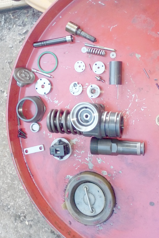 Ремонта се състоеше в почистване и подреждане на елементите. Разпръсквачите ги минавам на водна шкурка. После ги надувам с една обикновена пластмсасова спринцовка и нафта. Всичките направиха по 6 струйки.