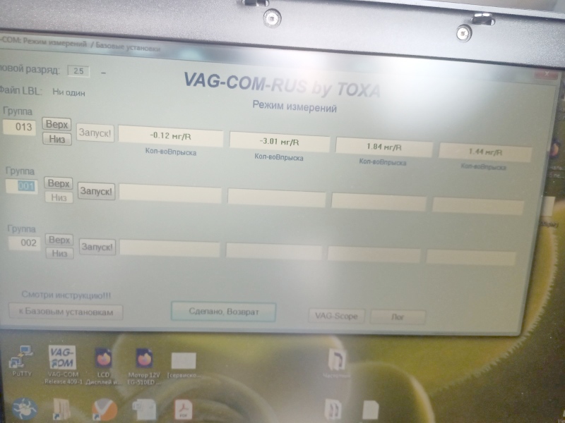 Събирам всичко по обратния ред и по указанията на пича. Тръгнах да монтирам дюзите. Всичко се смазва тънко с грес. Леглата са почистени перфектно. Нямам специалния тулс който препоръчват от VW и се наложи да изобретявам и импровизирам. Иначе спазих буквално упътването. Ясно ми е, че това е времянка. С тези разбити легла и износени корпуси... Няма пари за нова глава. Дори за ремонт на тази с втулки както правят руснаците. Загубих две седмици и похарчих 250 лв за нещо с неясен резултат, но подкарах Галаксито. Има разлика от преди. По-пъргаво е, но и по-шумно. Резултата от теста на дюзите с Вагком е това. Не мога да не съм радостен че го върнах към живот, но на каква цена и заслужава ли си влагането на труд и средства? Колко остатъчен живот има след като по километраж е на 380000? Дано да се закрепи и да кара защото аз повече на това хоро няма да се хвана! Два дена след епопеята и двете ми ръце се обелиха. Все едно свалях хирургически ръкавици. Това е резултат от химиите с които се киснах.
