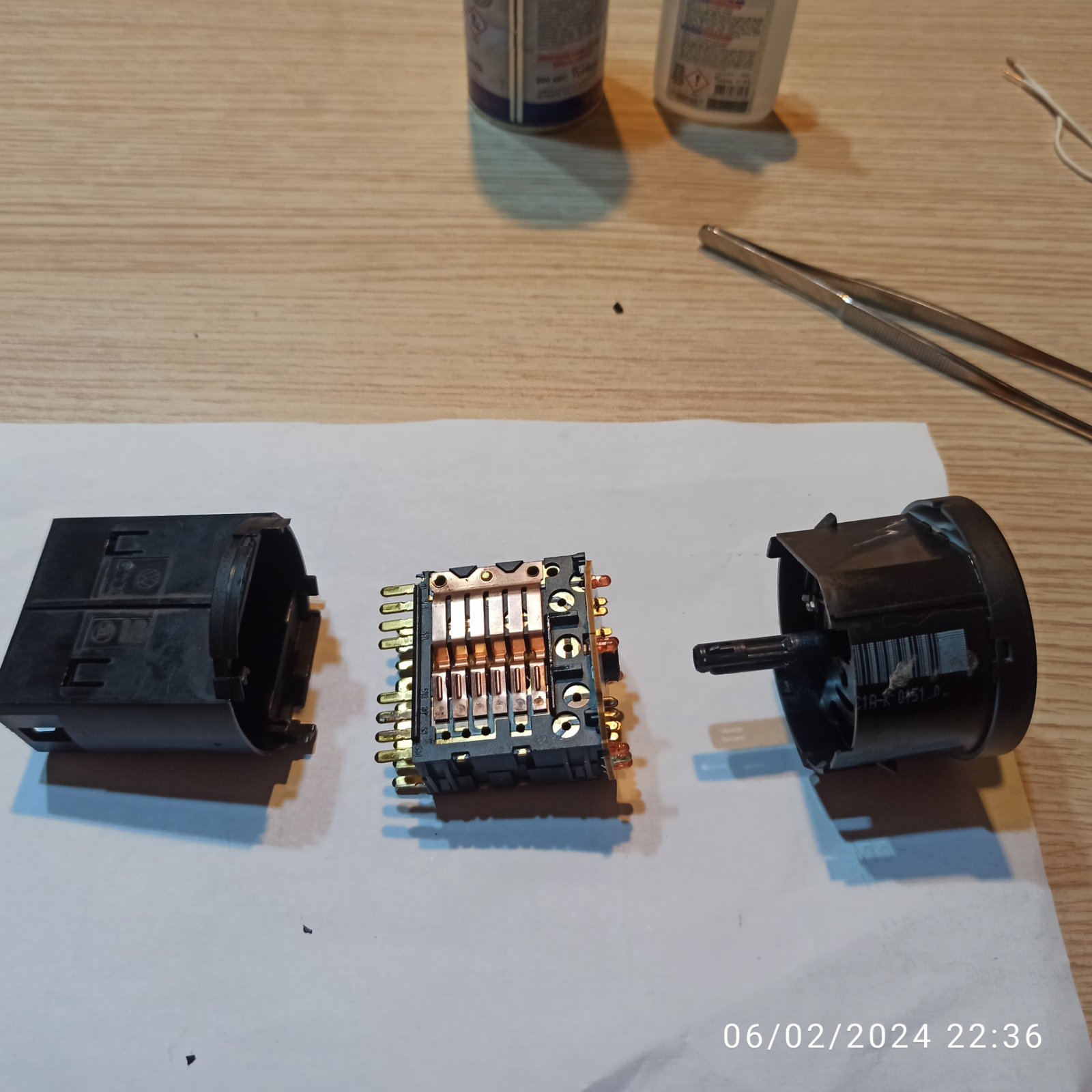 Спряха от веднъж да светят къси и дълги светлини индикацията за дълги също не светеше на таблото при включване. Имаше единствено габарити и халогени. Светкавицата за дългите работеше по което установих, че не са изгорели крушките. Замерих бушоните в комфортмодула- до четирите бушона за къси и дълги при включване на ключа не отиваше 12 волта, появяваше се 12 волта само при натискане на светкавицата на дългите. Проблема беше или в ключа или в комфортмодула и почнах от първия. Намерих схема на ключа в руски форум(там човека ремонтираше същият ключ, но с липсващ габарит) От схемата разбрах кои пинове трябва да окъся в буксата за да включа къси и пробвах - и къси и дълги заработиха на запален двигател. Извадих късмет проблема беше в ключа, с комфорт модула щеше да е доста по сложно и скъпо.