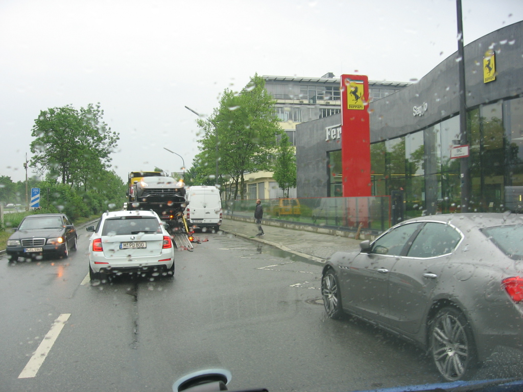 ]и още,,тук си снимаха ферарито, докато го свалят пред шоурума на път за баварските замъци