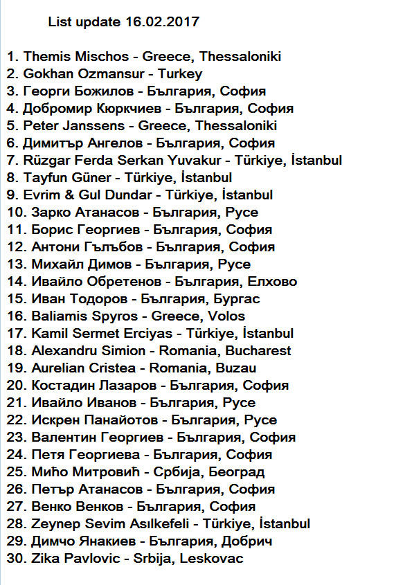 jorko.b67 написа:Гледам, че вече има записани хора за балканската среща и извън Балканите - Германия, Украйна...