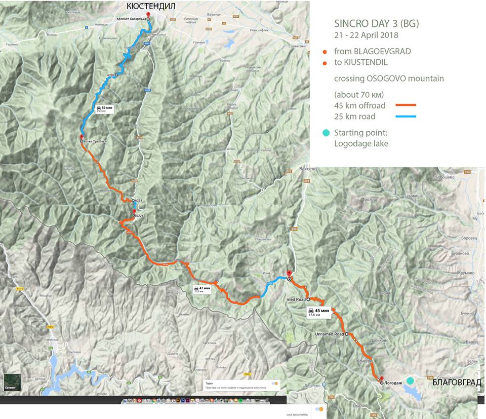 Прехода ще е около 70 км., като от тях 45км. са офф преход пред Осоговската планина. 25 км имаме по асфалт.