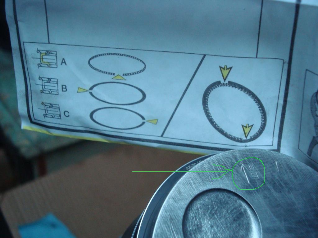 Здравейте , снощи поставих сигментите и буталата по местата им , днес поставих лагерите (основни биелни ) , коляновия вал ,болтовете са само обрани чакат стягане . Снощи излезе един въпрос. Закакво служи стрелката на буталата ? Викам си или посочва посока как да се поставят буталата в цилиндрите , на което си казах няма старшно, сега ще погледна старите снимки , преди да изкарам буталата и ще сверя по тях , отивам гледам изтрил съм снимките , като разгледах буталата и си спомних от една тема някаде бях чел за пръскалките , който охлаждат и смазват буталата , та буталата имат специален разрез ( форма ) ,през който разрез пръскалките да впръскват масло и така поставих буталата пръскалки от към тях отворите .Викам си до тук добре , но гледам има указания на листовката от сигментите как да се поставят , викам си можели масления сигмент убозначен на листовката със буква ( А ) като първи да трябва да сочи стрелката и от там да съобразиавам буква ( Б ) компресорен на 90 градуса от ( А ) и втори компресурен ( В ) на 180 градуса от ( Б ). Според тази схема ги поставих в цилиндрите , но днес щях да питам за стрелката , викам си да проверя в гогле , "какво означава стрелката на буталата " гледам излиза резултат в фолцваген форума има писано , кликам чета един се кара на друг да не се захващал с ремонта понеже бил зелен и му дава одговор на зададен от него въпрос че въпросната стрелка триабвало да сочи маховика. Викам си ,объркал съм ги, понеже моите стрелки сочат ремаците , в този момент влиза един клиент майстор на ДВГ, питам го и той казва : "-Стрелката на буталото сочи ремаците".Дано тази дрънканица помогне за напред на някой.