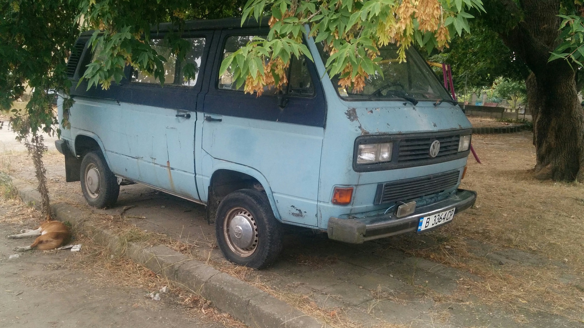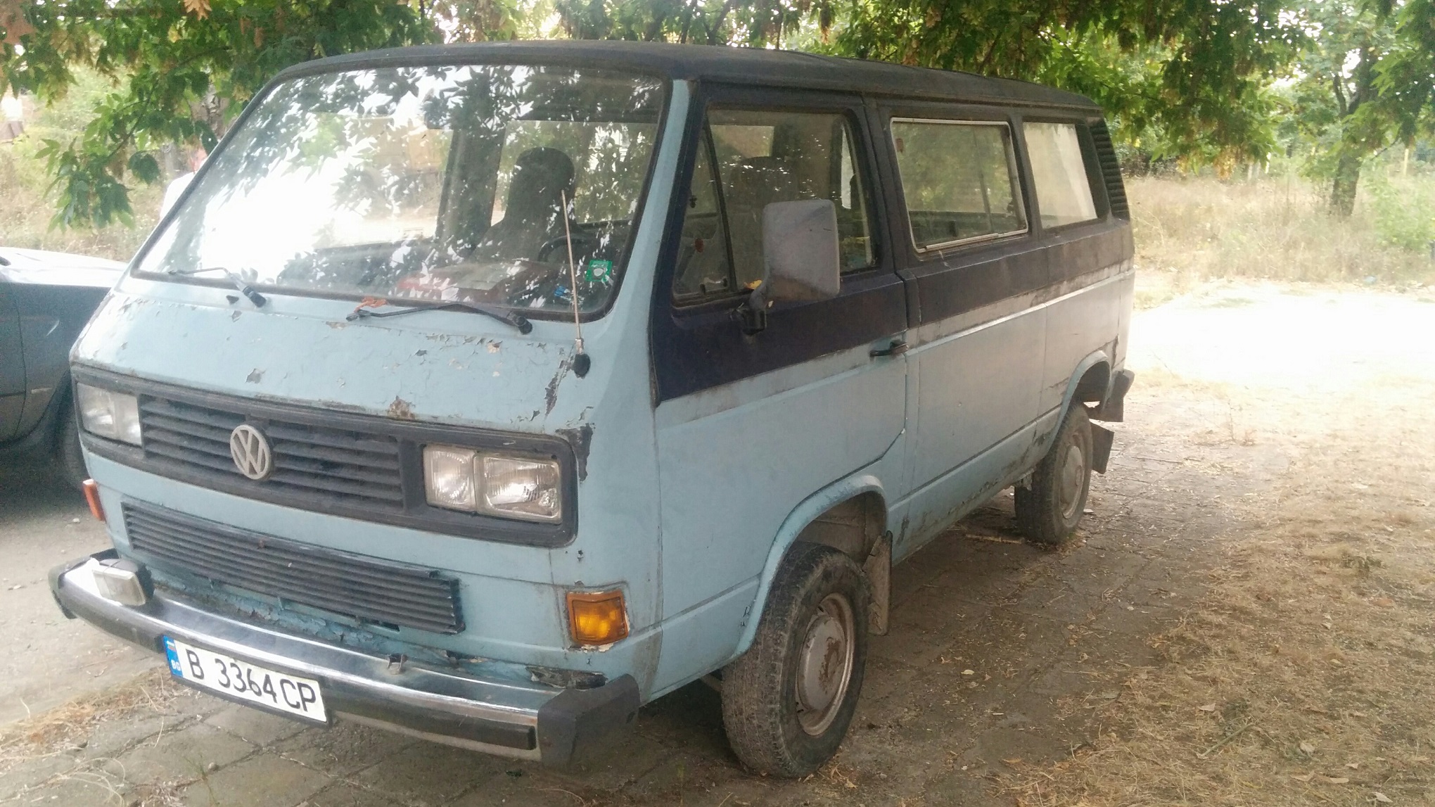 Здравей те колеги, Днес се сдобих с тази машинка( Т3 синхро каравел 1988 1.6 ТД) .Преди 10 години дядото го е направил само на задно като за моя радост пази всички части които са му свалили от сервиза(кардан,раздатки,полуоски,греди.....)аз съм ги взел+ един двигател 1,6тд с 4-степенна ск. кутия(сега е с 5-степенна)...имам голямо желание да го възстановя в оригиналния му вид.