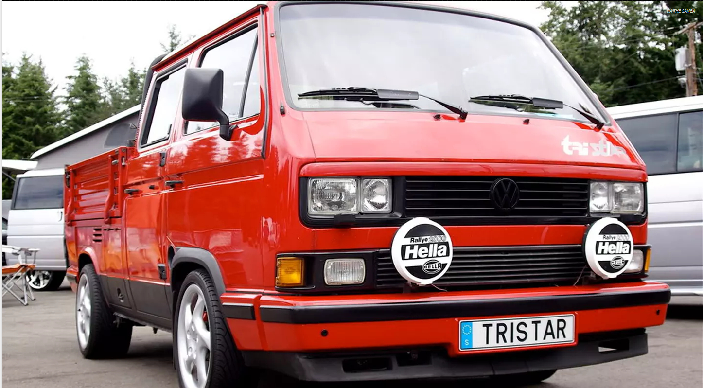 След като обърнах достатъчно внимание на цялата гама бусове, реших да напиша няколко теми за по-специалните модификации. Започвам с едно много симпатично пикапче, което е известно в цял свят с името VW T3 Doka Tristar. От октомври 1988 до 1991г. са произведени 1000 бр. с 4 врати TriStar(M314) /половината синхро/ и около 500 Magnum, като вторите са изнасяни само за Швеция и не са толкова богато оборудвани като Tristar. Модификацията е много популярна и използвана от дребния бизнес, когато се налага да се транспортира товар до 700 кг. и 5-6 човека. Има фенове които го ползват и за семеен автомобил