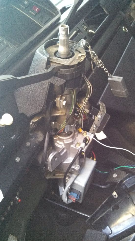 Смятам ,че целия този механизъм, който си има собствен "мозък", се управлява от компютъра на колата,тоест при различна скорост на автомобила този волан или се "втвърдява" или "омеква".Понеже тук явно няма как да се вземе сигнал от компютъра ,а и това го предлагат не само за Т3,хората са добавили една малка кутийка с електроника и потенциометър.Та,с въпросния потенциометър се регулира усилието на волана.За града по един начин, за извън града по друг ,както ти харесва