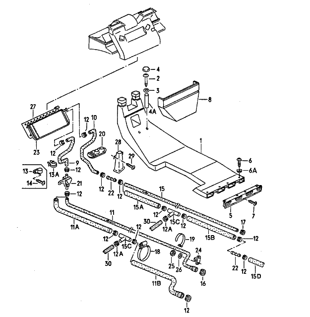 Ето ти схема на тунела и радиатора, по спомен за радиатора свяляш резервната гума, заедно с капака под нея, разкачаш тръбите, кабелите за вентилатора, и след това закрепването на самия радиатор.