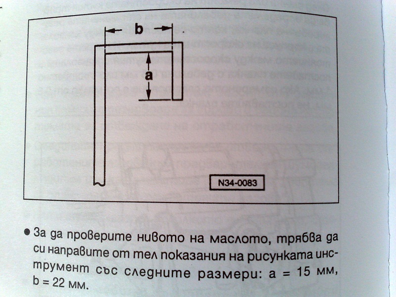 измерих си нивото на маслото с горепосочената щека и останових че съм под минимума