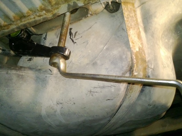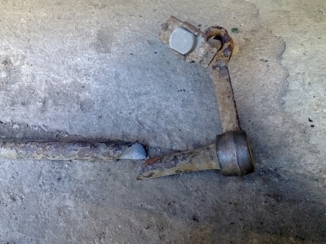 Продължение. Вижда се, че торсиона е имал някакъв стар дефект. Започвам търсенето на нов торсион. Има маркировка със зелена боя, но никъде не открих маркировка L. Гайката за регулиране на натяга на торсиона още не съм я развил, че забравих да измеря разстоянието до края на болта. Този болт има монтирана "Т"-образна основа и се вади с леко повдигане и завъртане докато излезе.