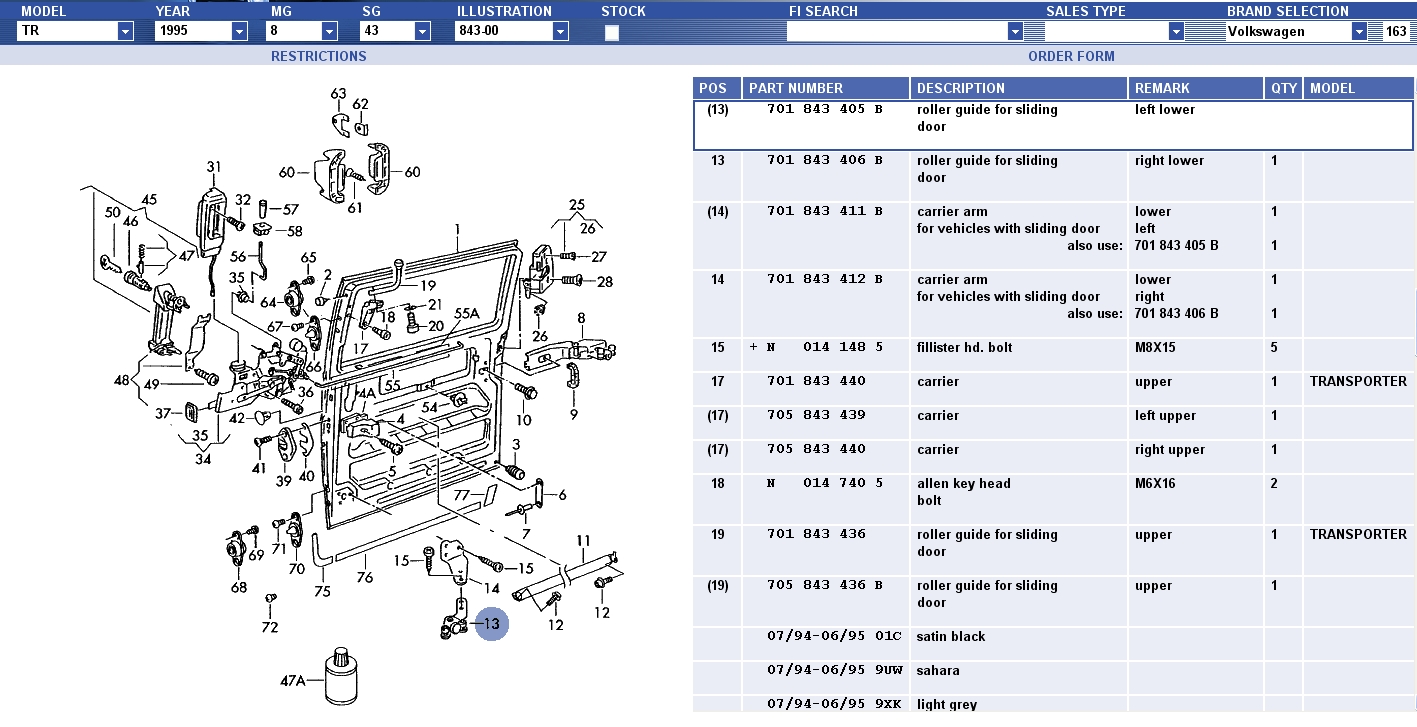 Само че има значение дали вратата е лява или дясна.Лява 701 843 405В И дясна 701 843 406В