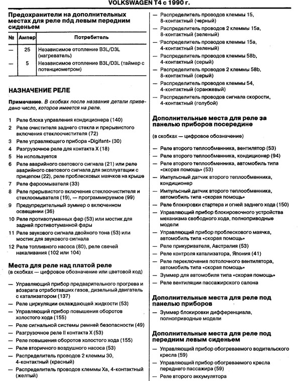 здавейте колеги някои може ли да ми обясни разположението на предпазителите на на таблото от 1до22 за Т4 2.4 ДИЗЕЛ 1993г предварително благодаря