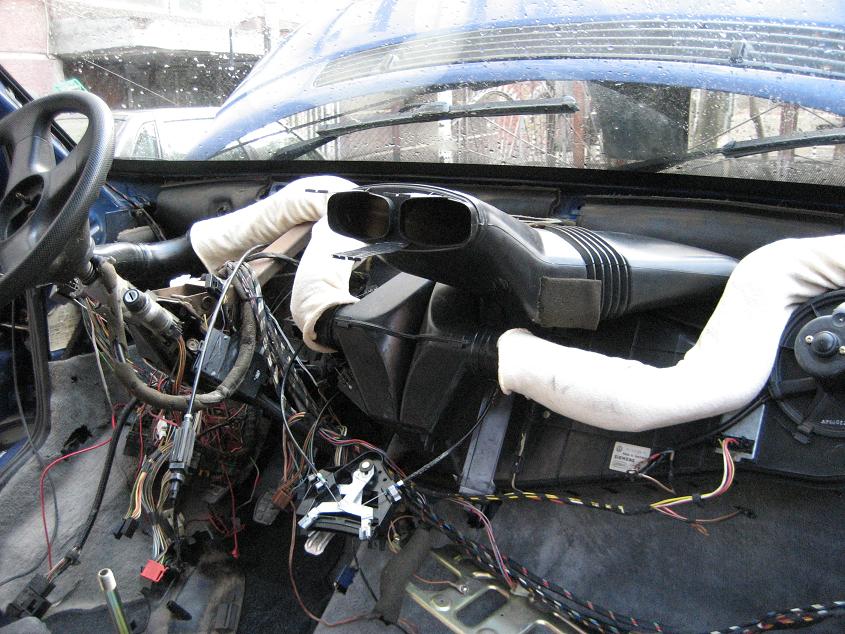 Стара тема да я изясним все пак,днес с това се занимавах.Няма трудно и сложно отделяш 4 часа като за начинаещ и рапидна отверка с гидориика.Т4 2.5 тди КЛИМАТРОНИК :th_up Като за начало(няма нужда да се точи фреона) гасиш акумулатора :mhihi наи важното....после се свалят духалите на парното,волана,километража,пасажерския ербег се развива през отвора на плеъра и отвора на дясната духалка.Сваля се барчето конзолата под таблото,климатроника,управлението и всички копчета.Опред при двигателя в средата има болт с вътрешен шестограм за таблото,развиват се и всички болтчета държащи кутията на парното+двата маркуча на радиаторчето и вакумния между тях.Вътре се сваля само горната част на арматурното табло,след това се разкопчава )разделя) топлата от студената част на климатроника.Разкачат се всички букси,излиза без зор.Не забравяите да си смените дунапрена на клапите,после по обратния ред акумулатора последен се закача.Няма се плашите все пак немец го е мислил да е лесно за ремонт.УСПЕХ снимки по късно. :c020